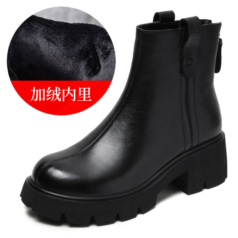 두꺼운 굽 탑 레이어 소가죽 짧은 부츠 여성용 영국 스타일 2023 가을과 겨울 빈티지 라운드 토 마틴 부츠 두꺼운 단독 기사 얇은 부츠스토어 가기