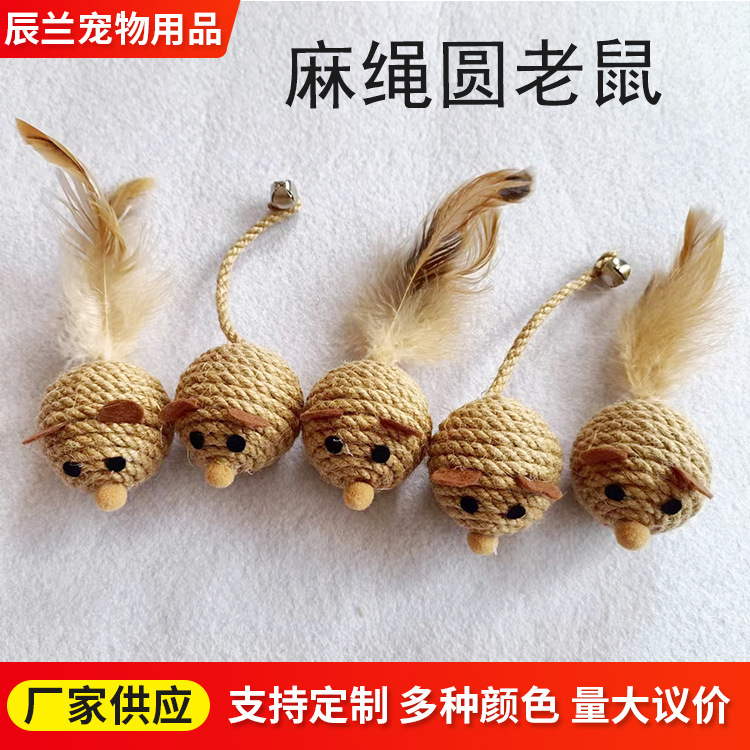 대마 로프 마우스 고양이 장난감 긁힘 방지 고양이 자기-깃털이있는 안녕 장난감 시뮬레이션 고양이 대마 로프 마우스를 놀리는 벨스토어 가기