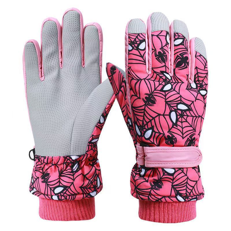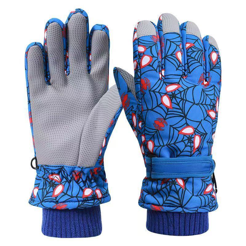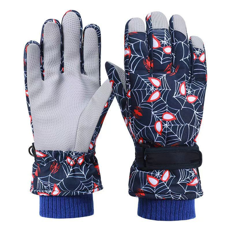 겨울 어린이 스파이더 맨 핑거 백 손가락 두꺼운 면 따뜻한 바람-차가운 방수 눈 만화 스키 장갑 겨울
