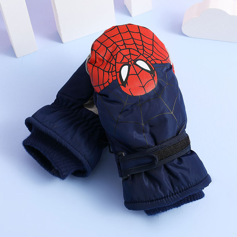겨울 어린이 스파이더 맨 핑거 백 손가락 두꺼운 면 따뜻한 바람-차가운 방수 눈 만화 스키 장갑 겨울스토어 가기