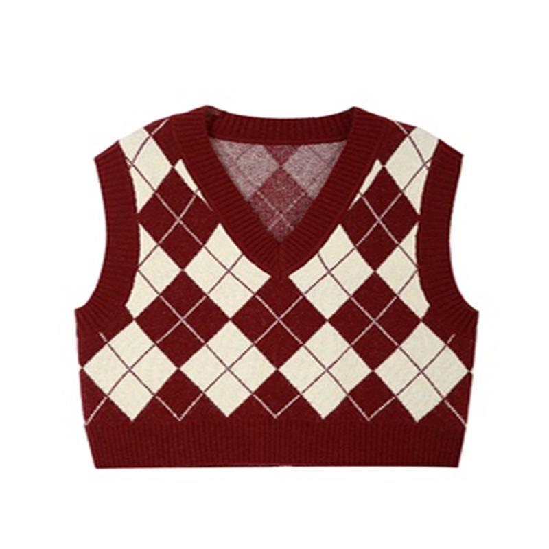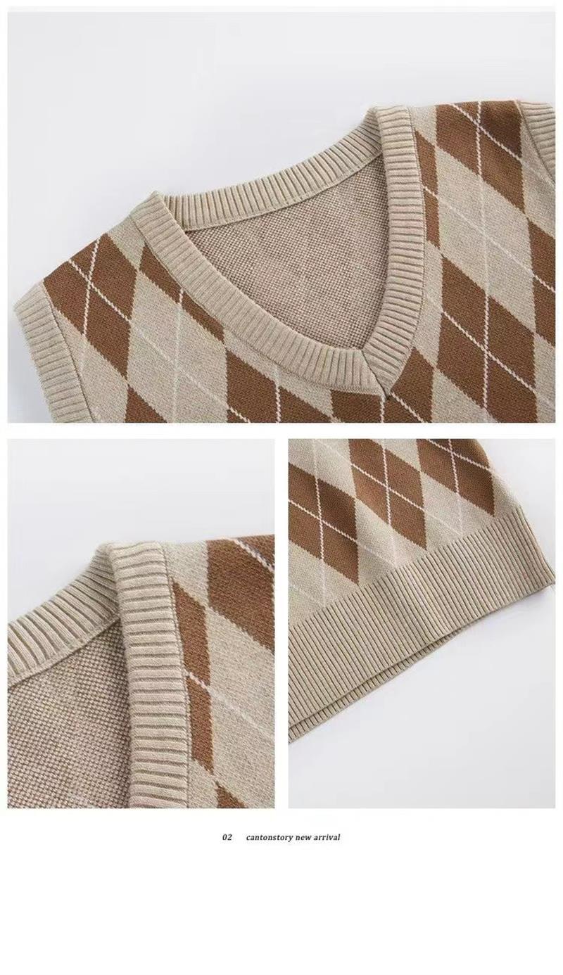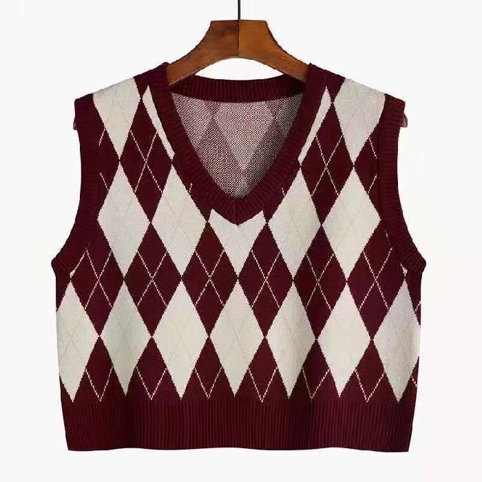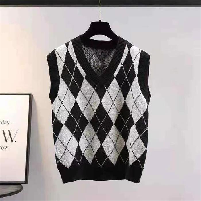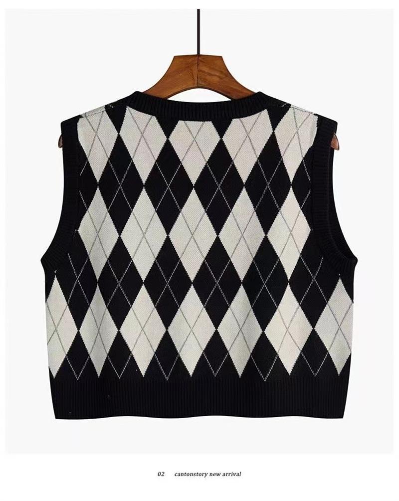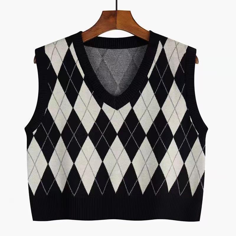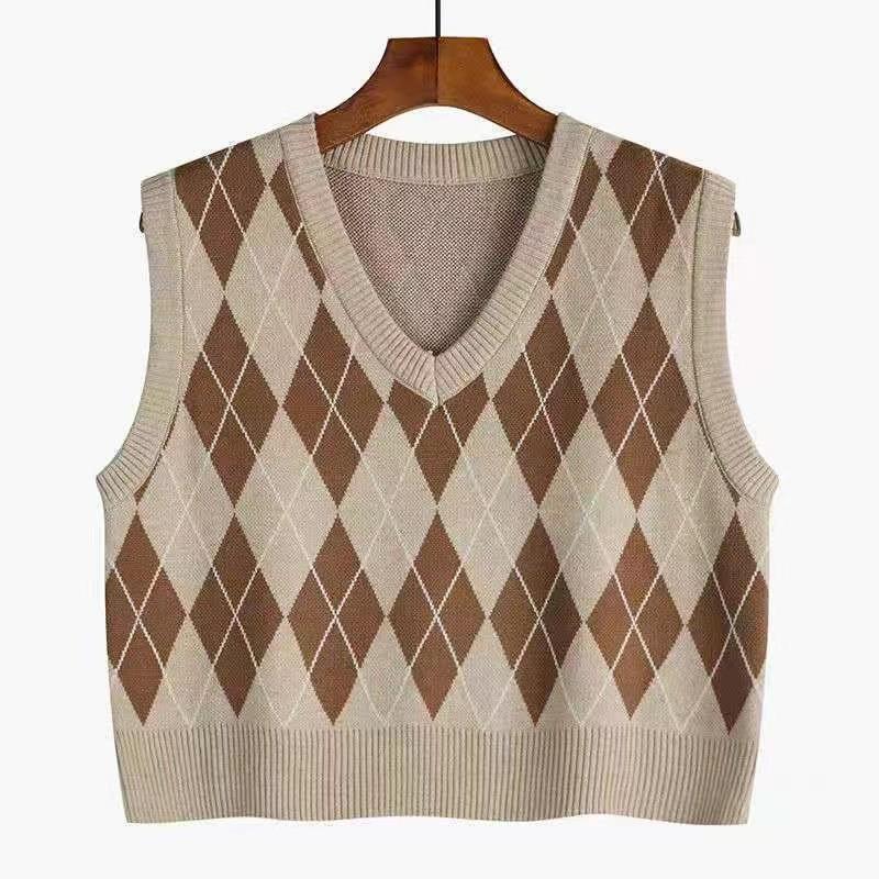 2025 봄 가을 여성용 루즈 풀오버 마름모 조끼 새로운 복고풍 레이어드 니트 조끼 짧은 양복 조끼스토어 가기