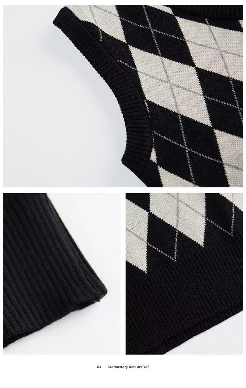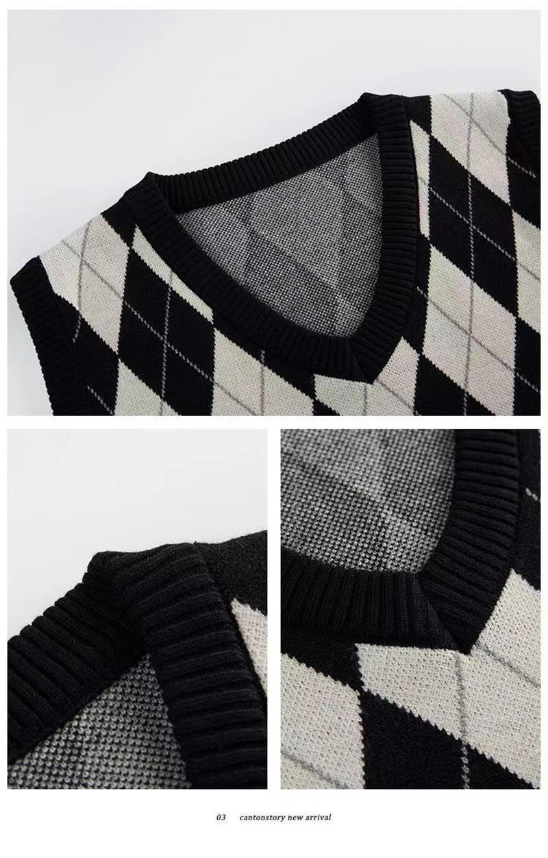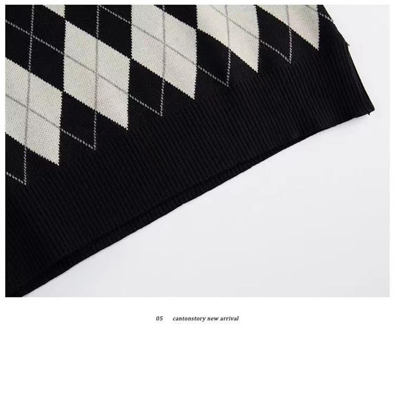 2025 봄 가을 여성용 루즈 풀오버 마름모 조끼 새로운 복고풍 레이어드 니트 조끼 짧은 양복 조끼