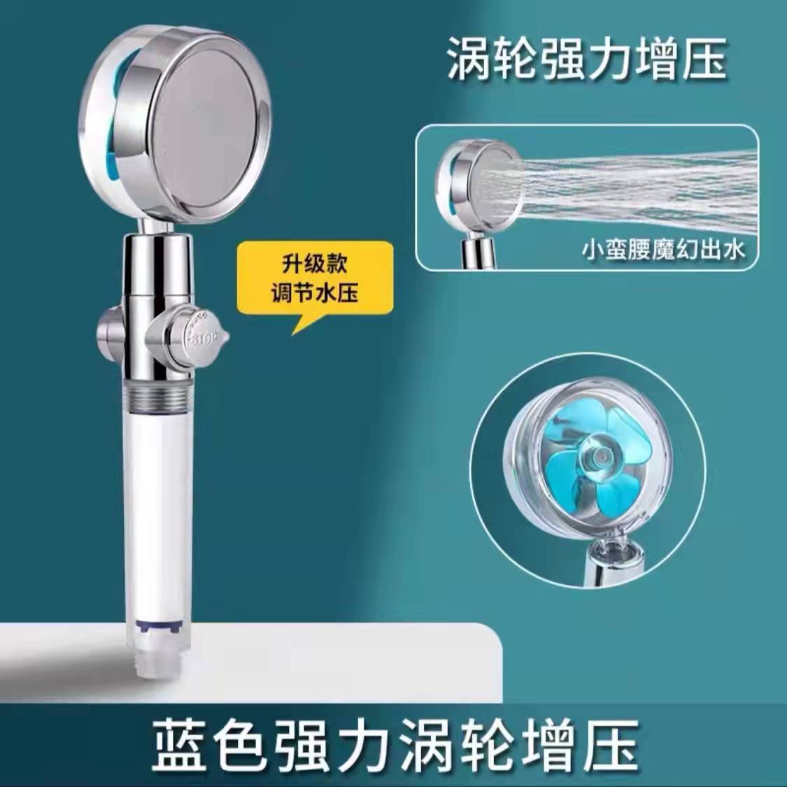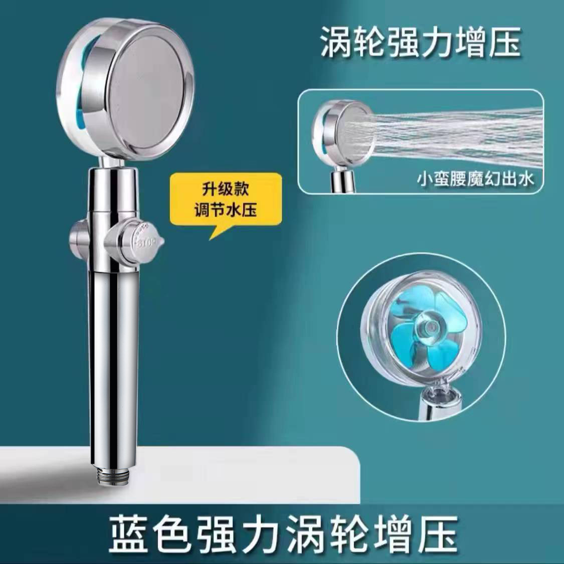공장 직영 소형 웨이스트 과급 팬 샤워 헤드 프로펠러 터빈 샤워 핸드 헬드 샤워 헤드스토어 가기