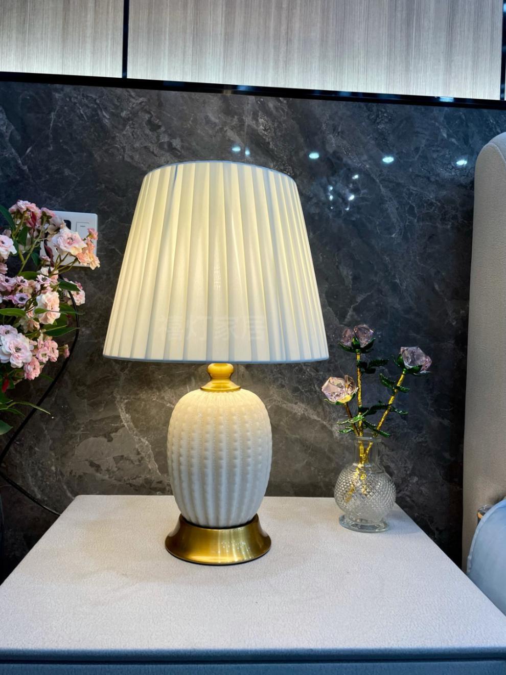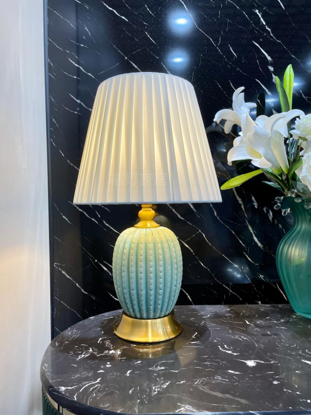 가벼운 고급 미국 세라믹 테이블 램프 침실 거실 간단한 현대 중국 유럽 스타일 올 매치 장식 침대 옆 테이블 램프스토어 가기