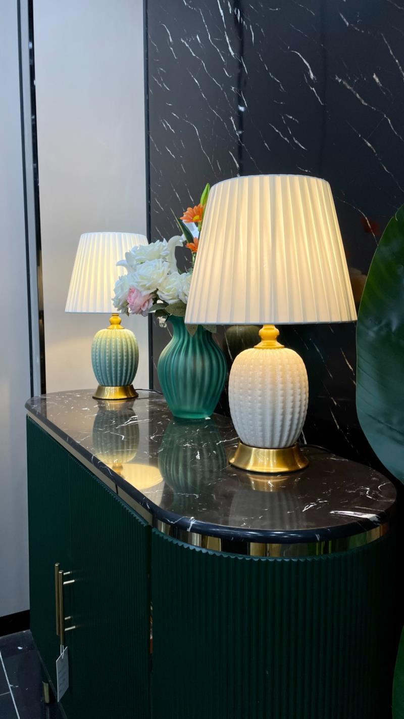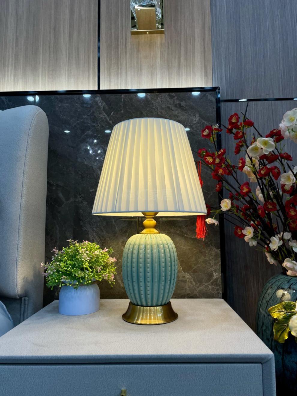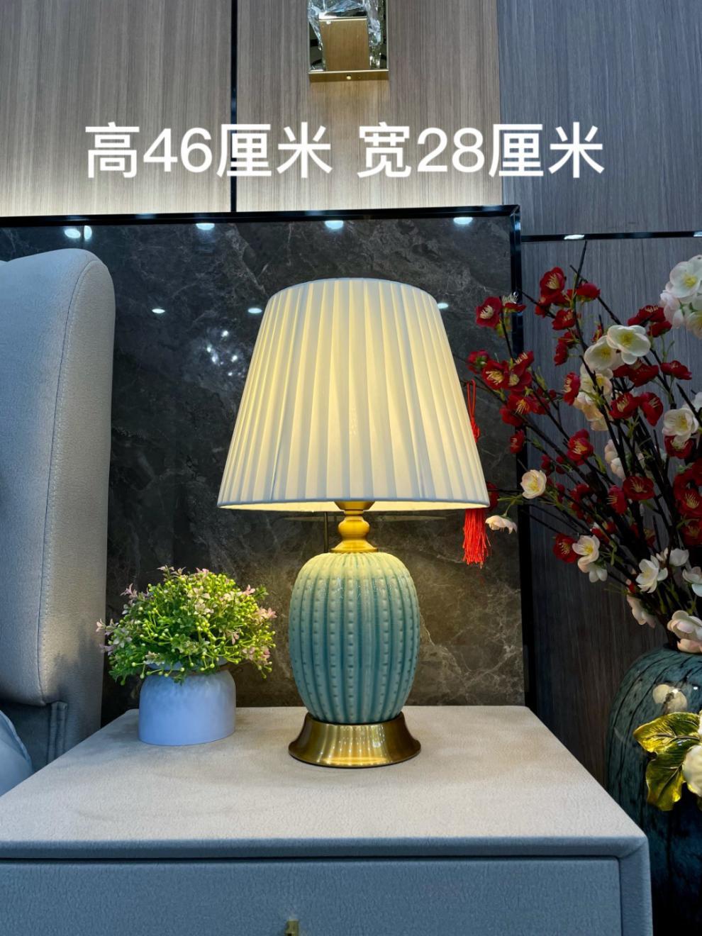 가벼운 고급 미국 세라믹 테이블 램프 침실 거실 간단한 현대 중국 유럽 스타일 올 매치 장식 침대 옆 테이블 램프