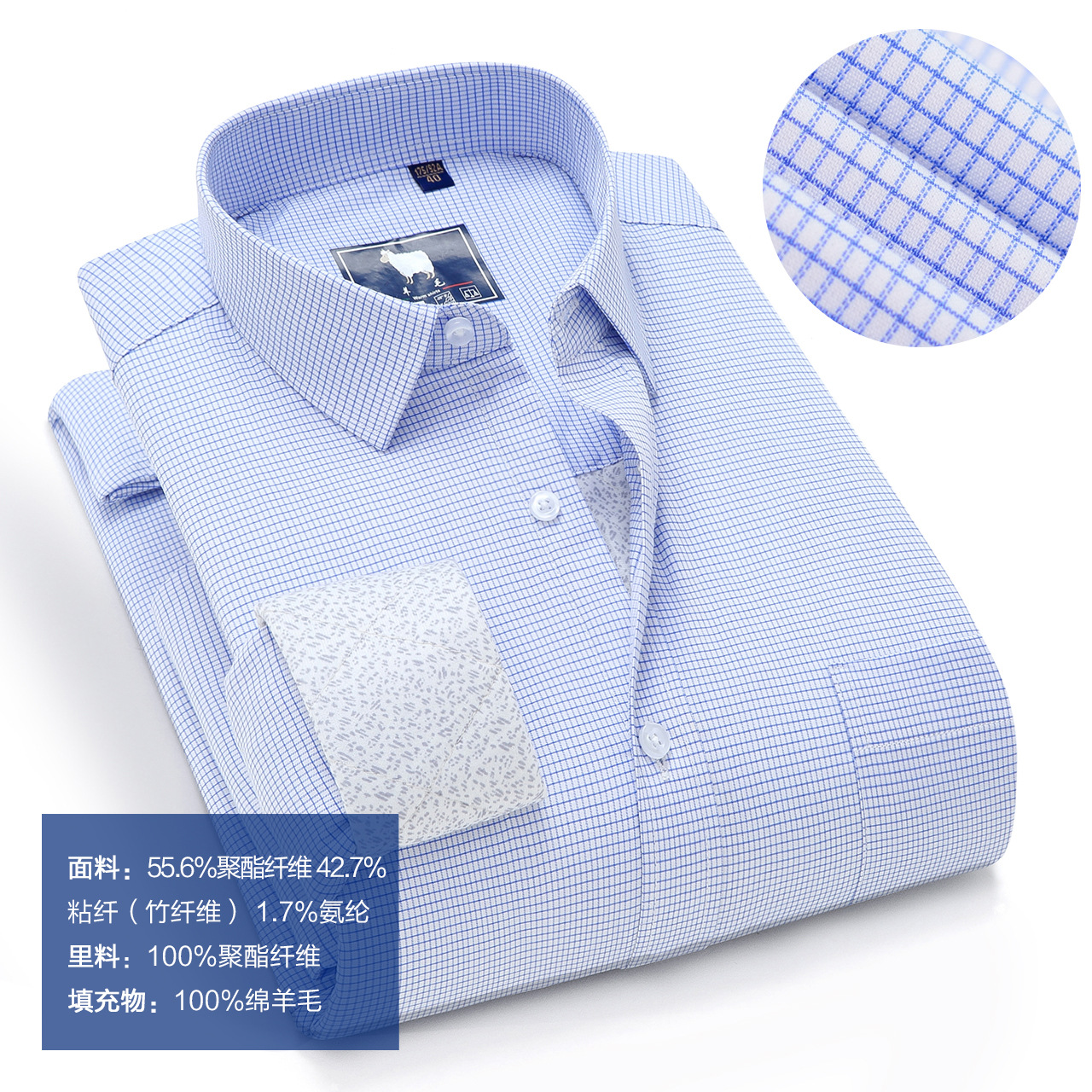 가을 겨울용 기모 안감 두꺼운 남성 셔츠, 남성 비즈니스 대나무 섬유 긴팔 셔츠, 체크 무늬 보온 양모 셔츠스토어 가기