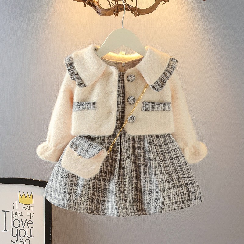 대외 무역 도매 어린이 가을과 겨울 세트 원피스 여자 겨울 두꺼운 밍크 벨벳 조끼 2 피스 스커트 조수스토어 가기