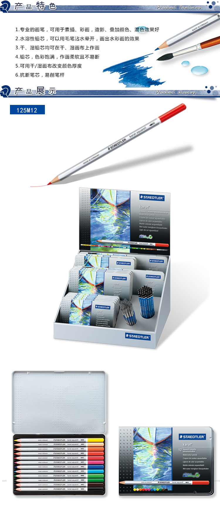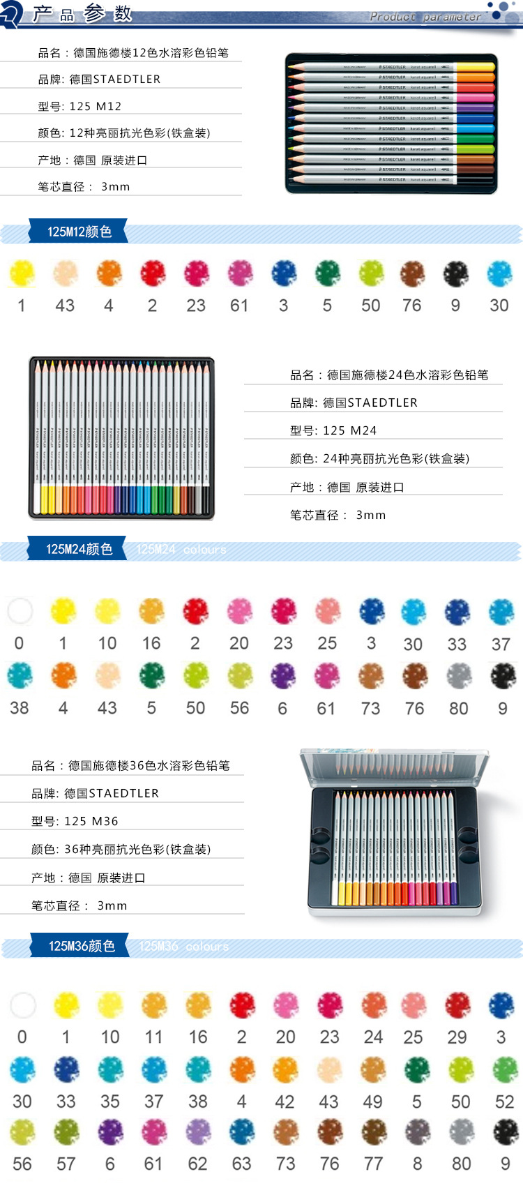 도매 독일 STAEDTLER Scher 빌딩 125 M36 컬러 리드 페인팅 안티 깨진 코어 수용성 컬러 연필스토어 가기