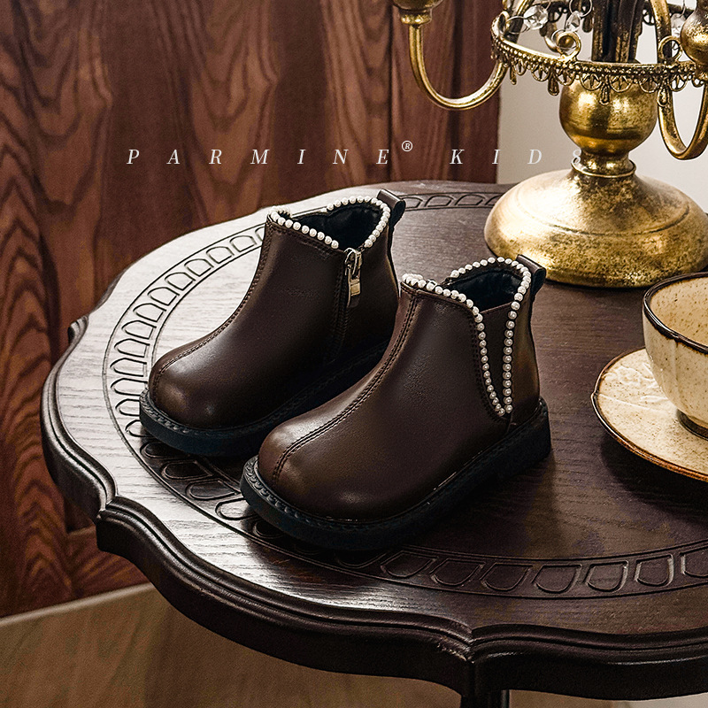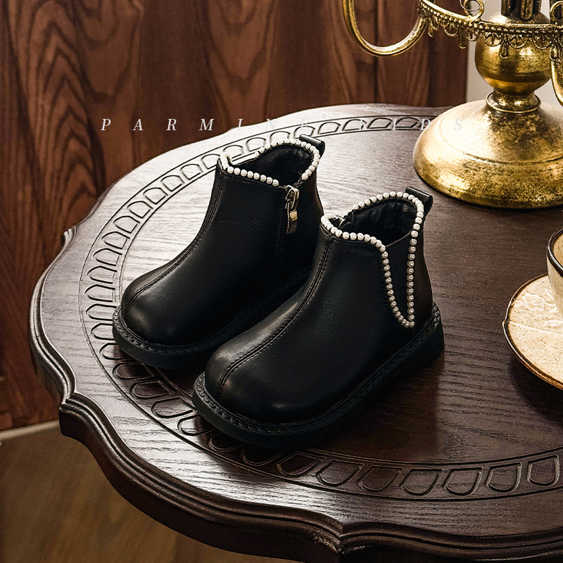 여아 공주 신발 마틴 부츠 2025 가을 한국 스타일 신상 플러스 벨벳 보온 가죽 부츠 여아 패션 부츠 숏부츠