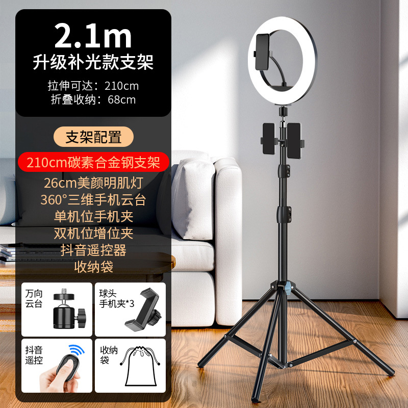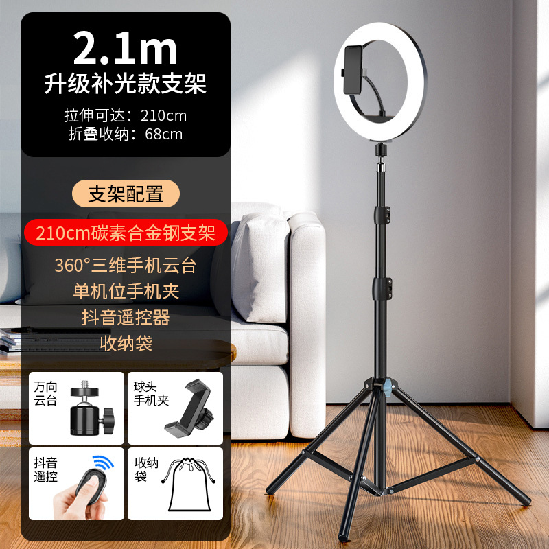 • 2.1 m [업그레이드된 합금 프로스트 브라켓] 10 인치 램프 + 싱글 위치 + 트레몰로 셀카 + 보관 가방