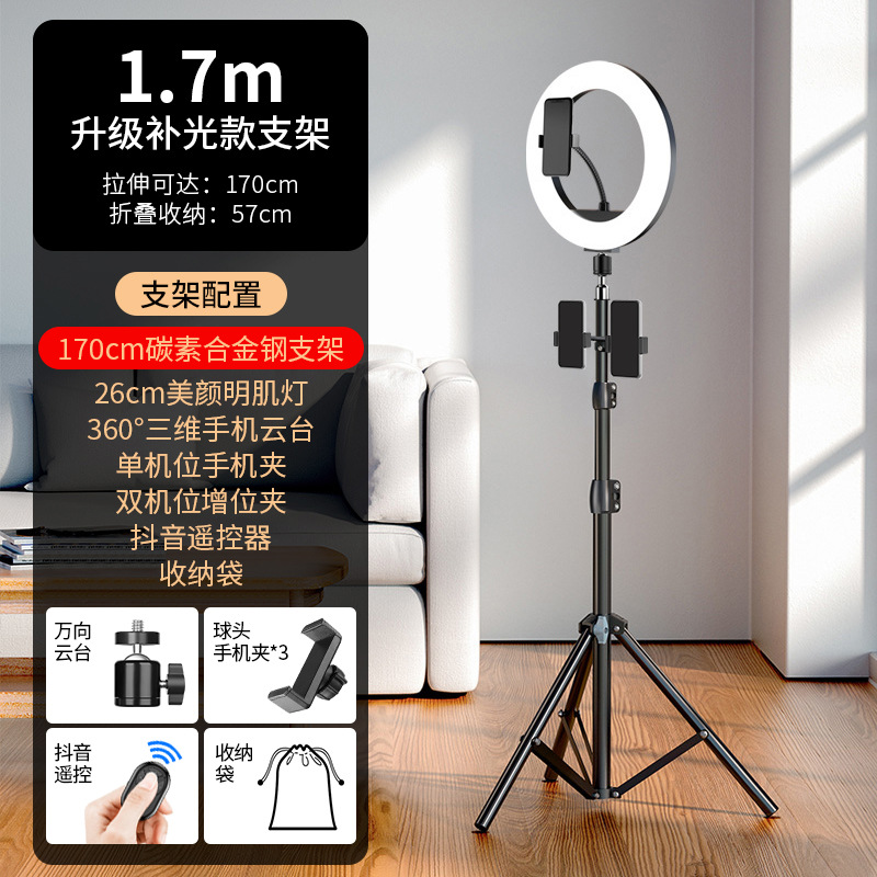 • 1.7 m [업그레이드된 합금 프로스트 브라켓] 10 인치 램프 + 싱글 위치 + 트레몰로 셀카 + 보관 가방