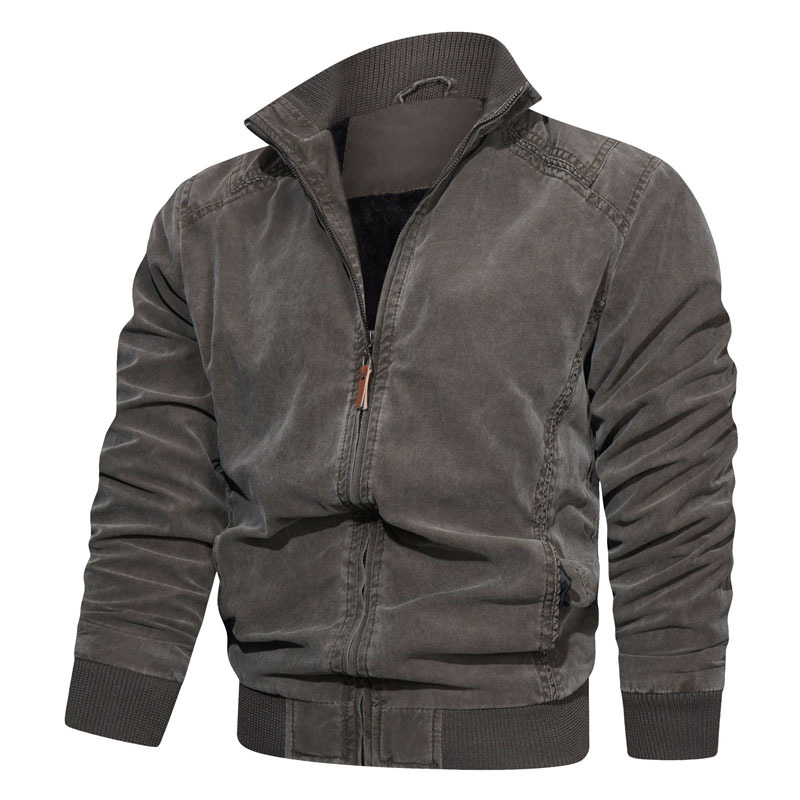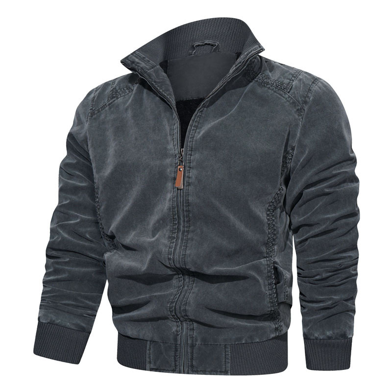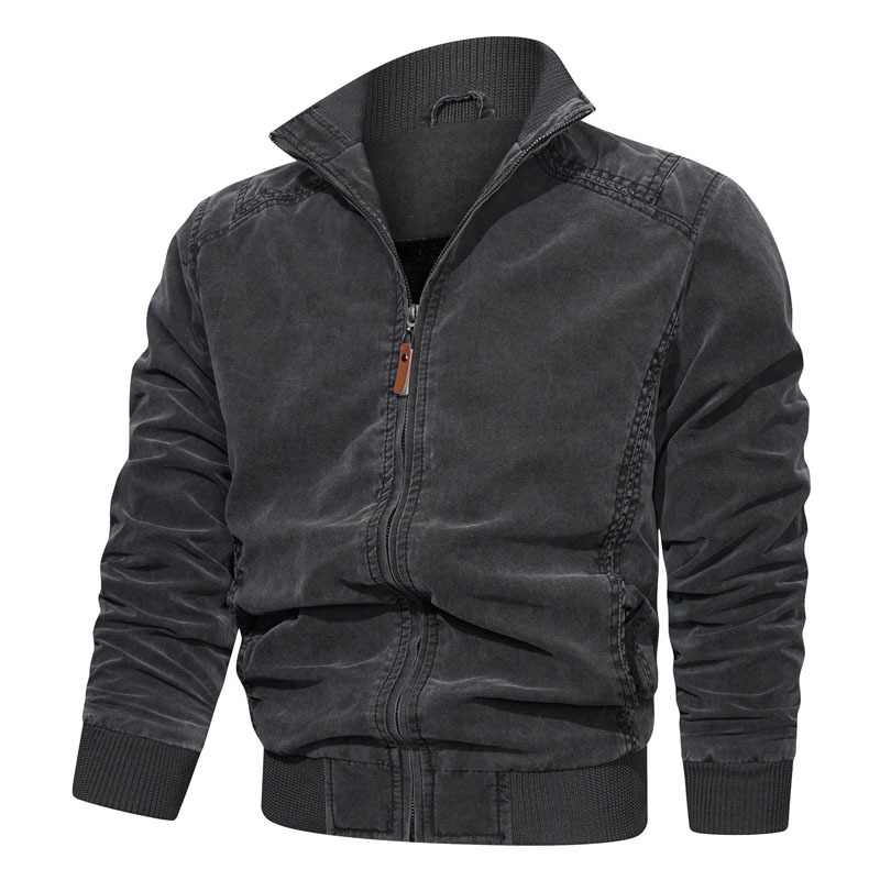 AliExpress는 대외 무역 순수 면화 빈티지 남성 가을 재킷 캐주얼 느슨한 세트 남성 스탠드 칼라 남성 의류스토어 가기