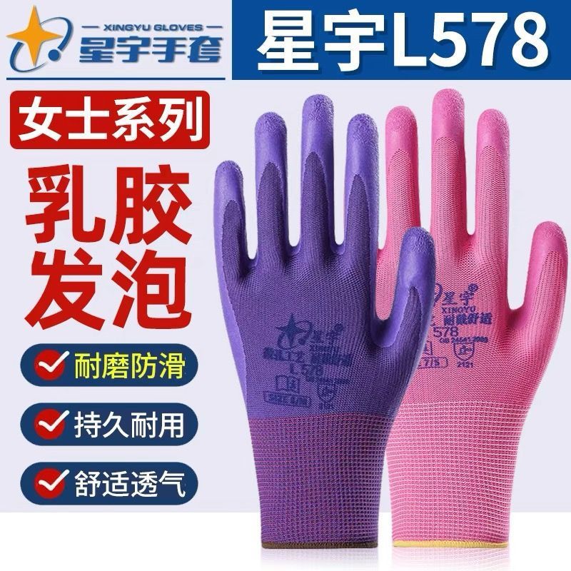정품 Xingyu L578 숙녀 스몰 사이즈 장갑 라텍스 주름 폼 노동 장갑 미끄럼 방지 내마모성 통기성 소프트