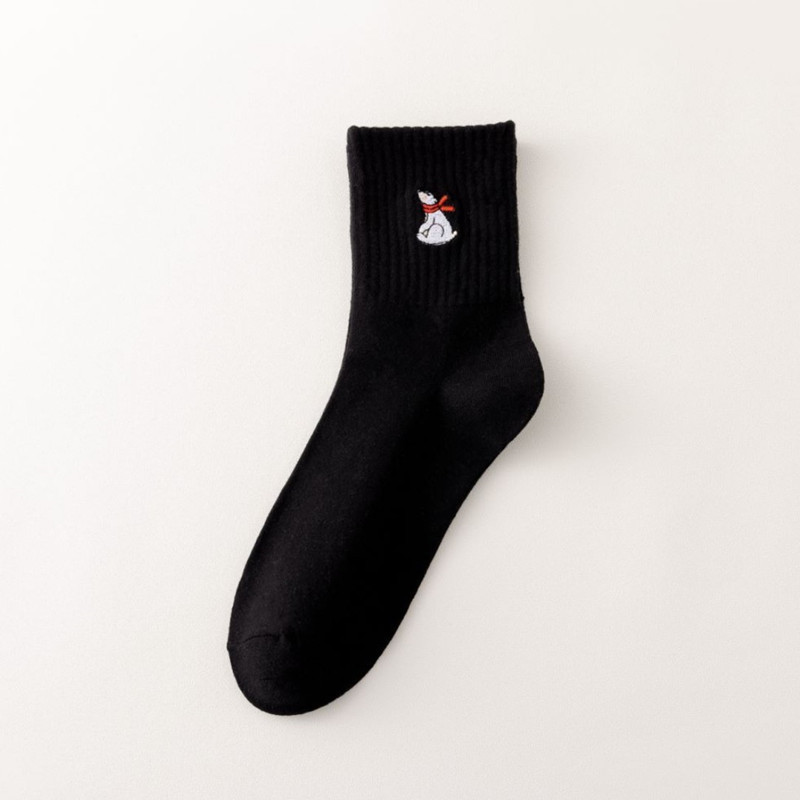 가을과 겨울 새로운 자수 북극곰 남자 양말 한국 유행 힙합면 양말 남자 국경 흑백 양말