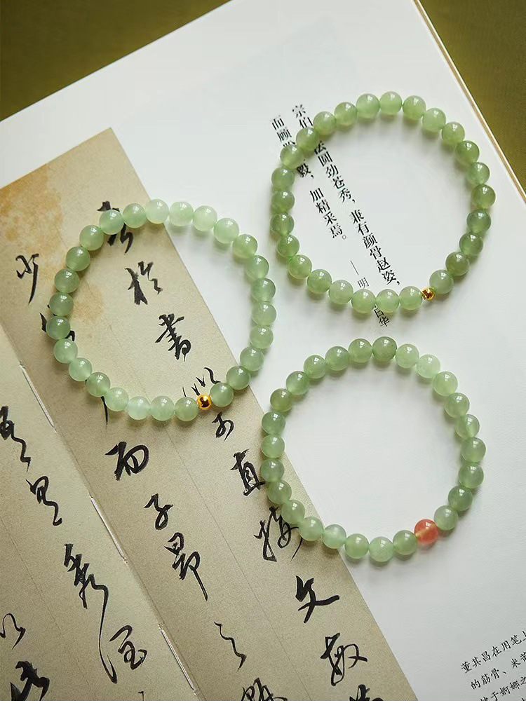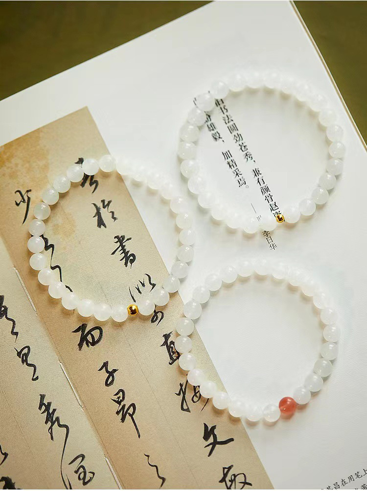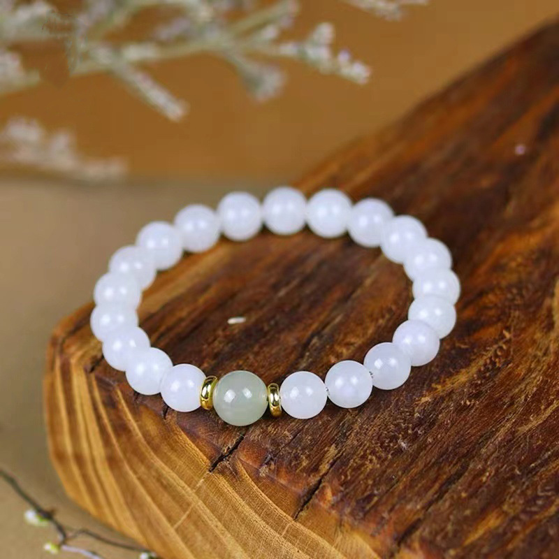 천연 Hetian 옥 팔찌 여성 전송 비즈 Qingshui Hetian 옥 팔찌 화이트 재스퍼 작은 복숭아 꽃 점진적 변화 팔찌스토어 가기