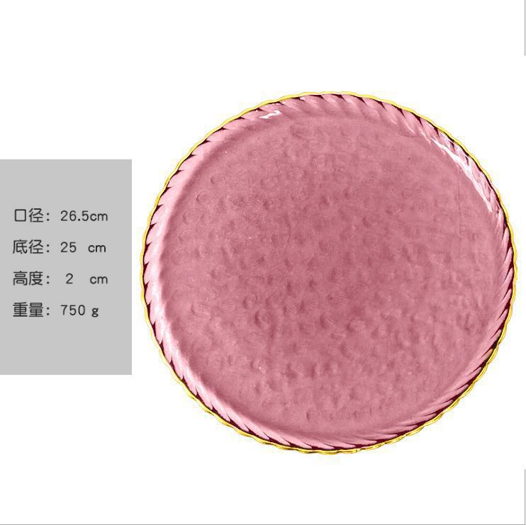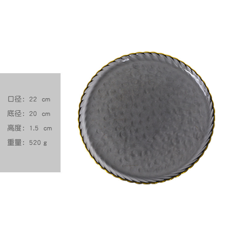 스테이크 서양 음식 접시 투명 유리 가정용 평면 바닥 접시 유럽 스타일 프놈펜 망치 과일 샐러드 내열 식기 접시스토어 가기
