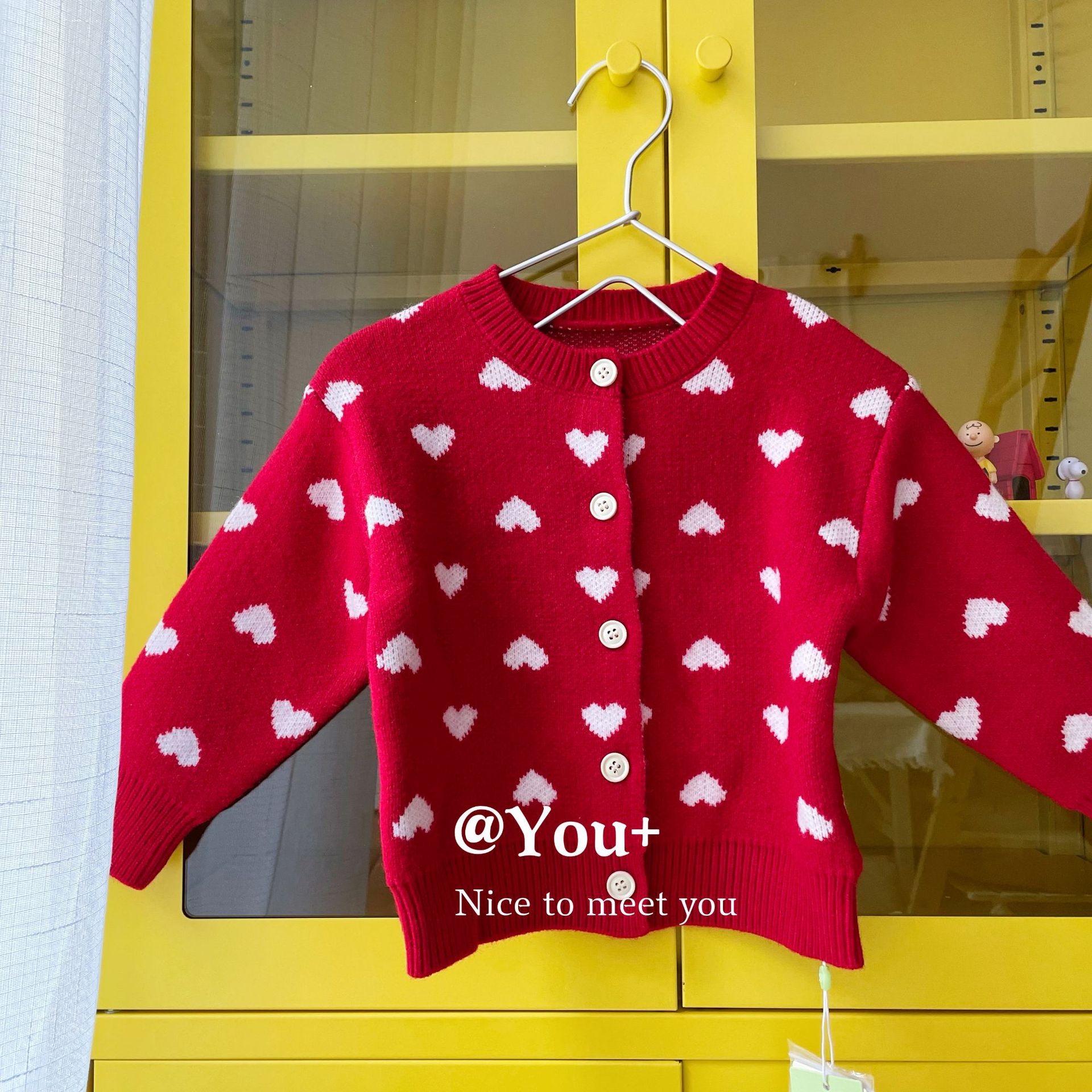 Su right 봄과 가을 레드 러브 자카드 아동 스웨터 니트 카디건 코트 여성 아동복 도매스토어 가기
