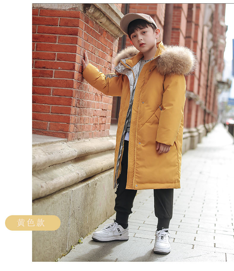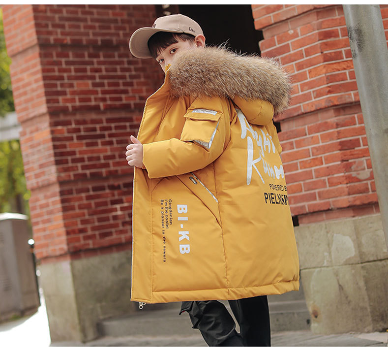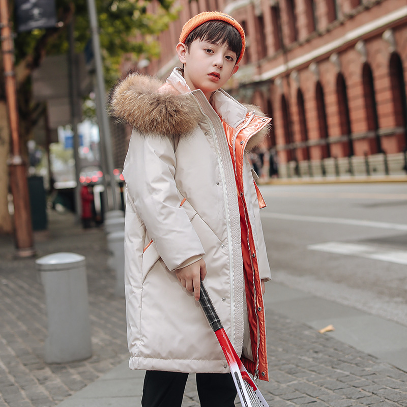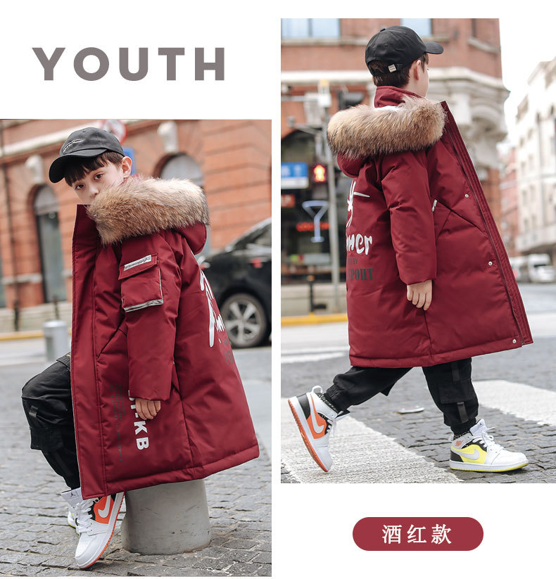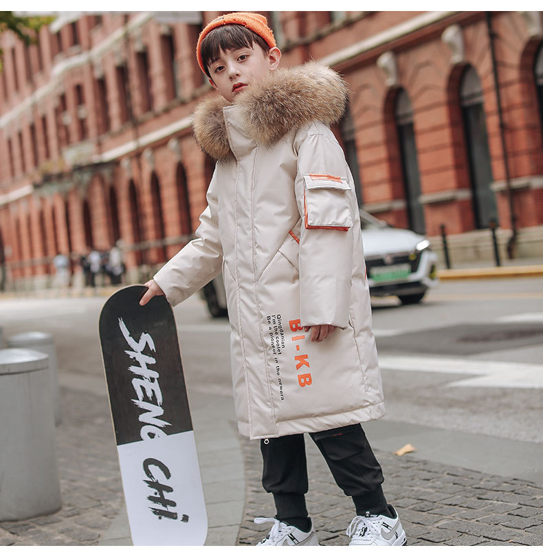 아동 다운 재킷 소년 중간 길이 중대형 아동 2024 한국 스타일 두꺼운 외국 스타일 아동 다운 재킷 작업 재킷