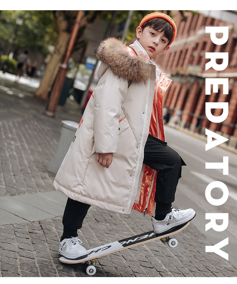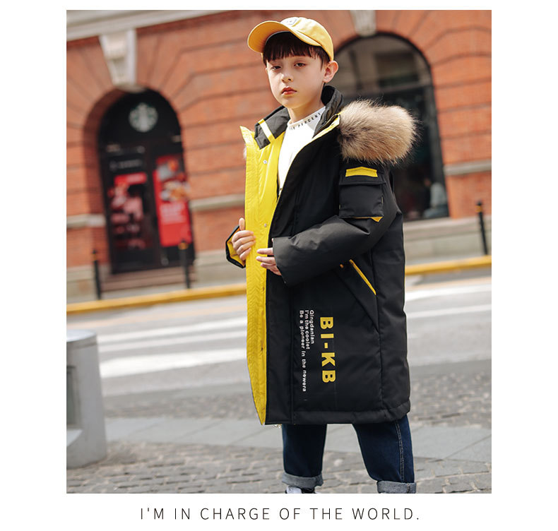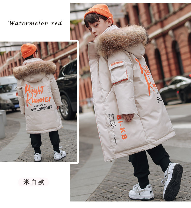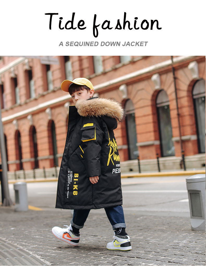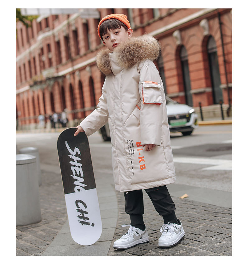 아동 다운 재킷 소년 중간 길이 중대형 아동 2024 한국 스타일 두꺼운 외국 스타일 아동 다운 재킷 작업 재킷