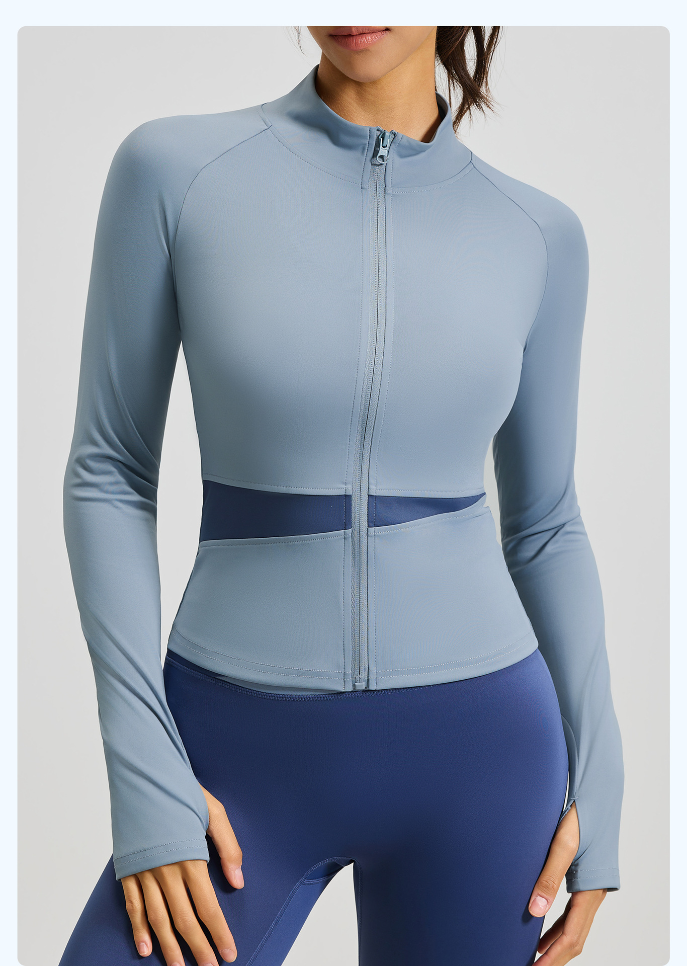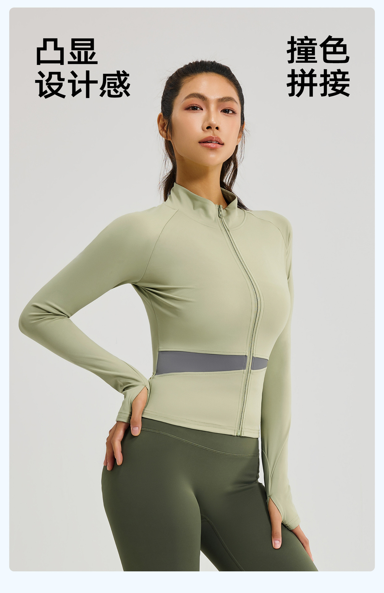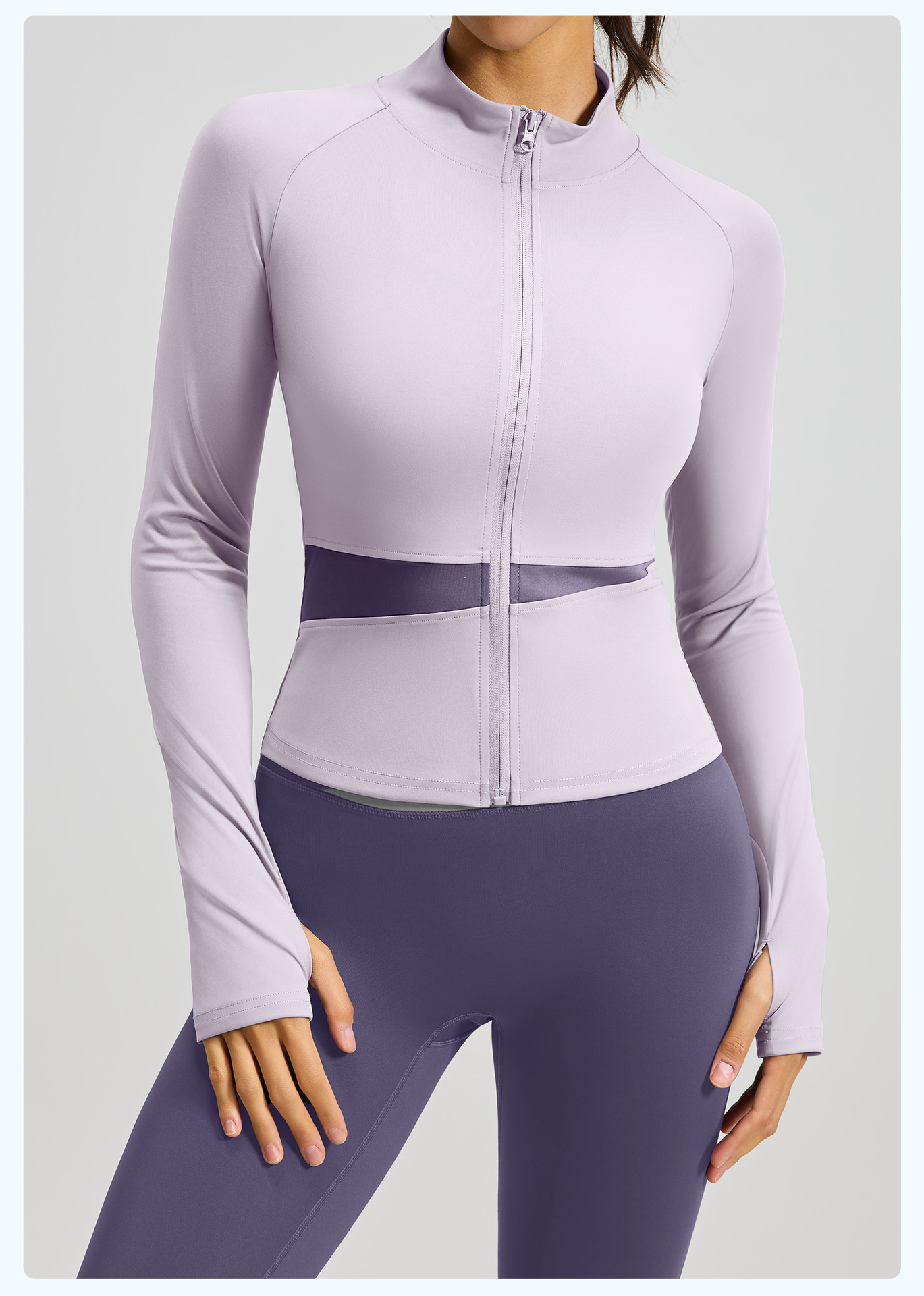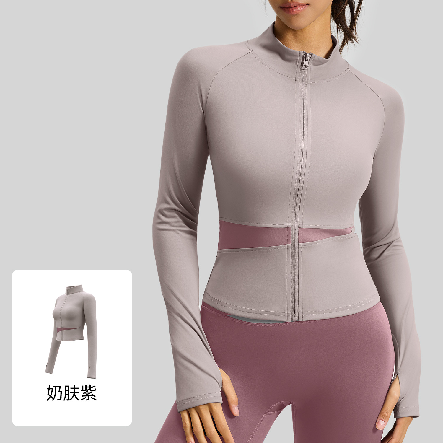 Juyitang 복숭아 컬러 매칭 요가 재킷 누드 스포츠 탑 하이 칼라 슬리밍 통기성 피트니스 의류 여성용