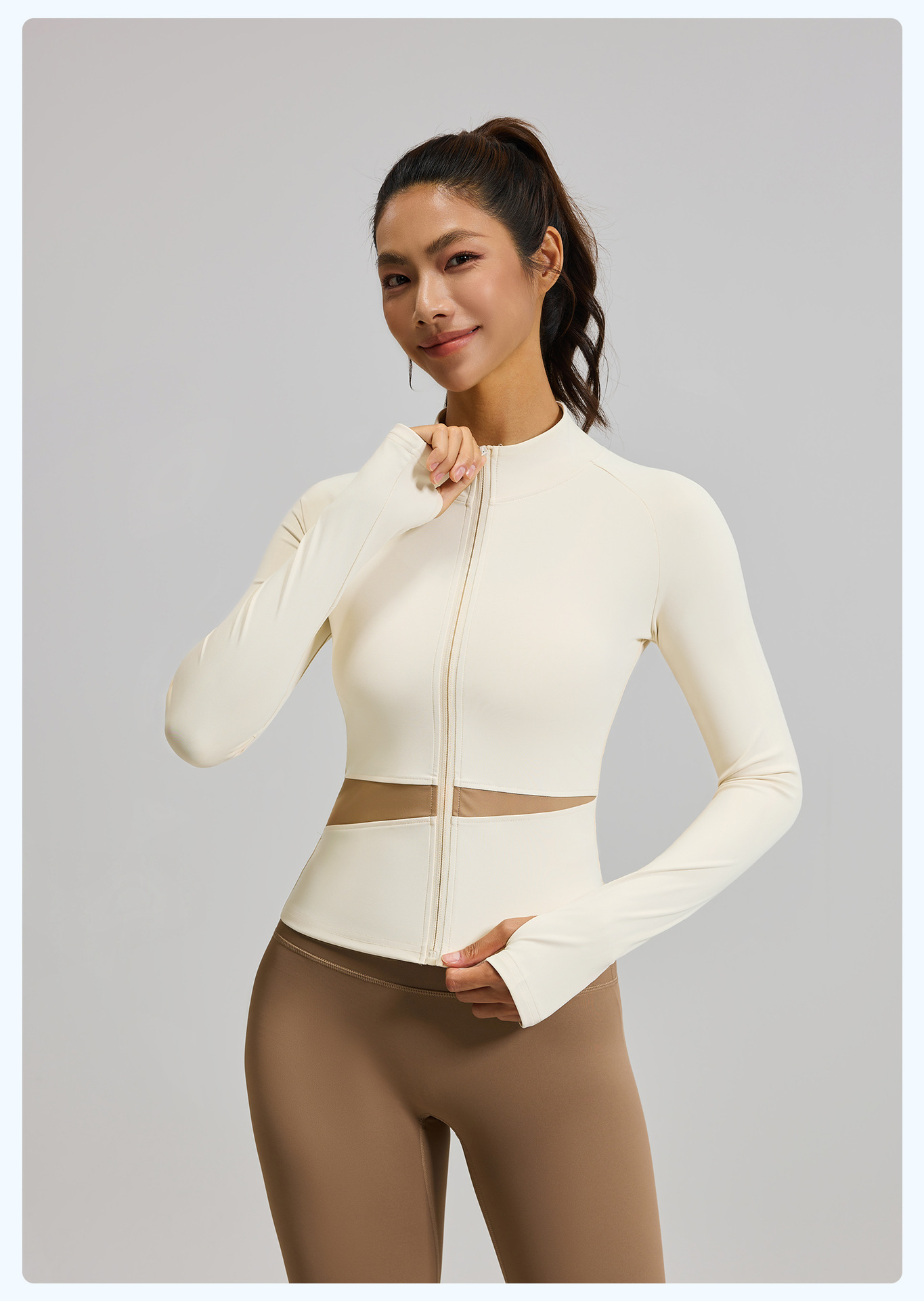 Juyitang 복숭아 컬러 매칭 요가 재킷 누드 스포츠 탑 하이 칼라 슬리밍 통기성 피트니스 의류 여성용스토어 가기