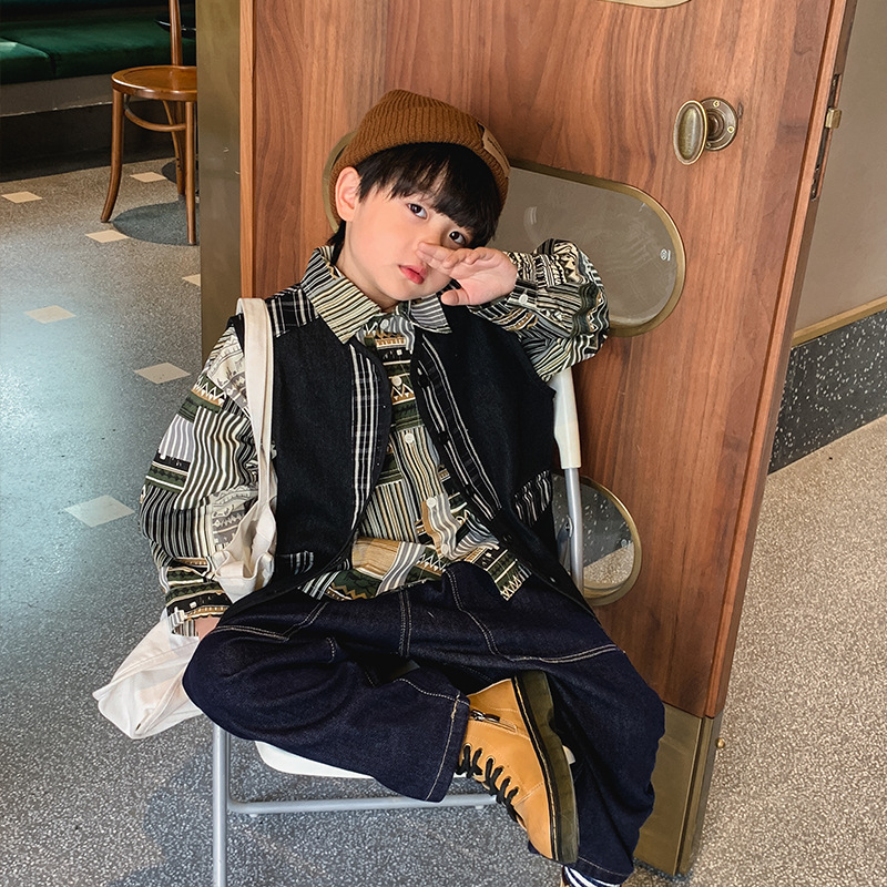Baoduo 아동복 소년의 데님 조끼 코트 봄과 가을 2022 새로운 어린이 서양 스타일 가을 조끼 아기의 양복 조끼