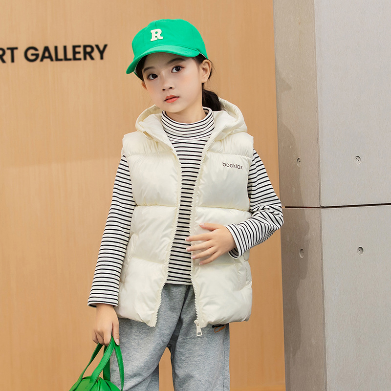 여아 다운 면 조끼 후드 두꺼운 가을과 겨울 어린이 조끼 아기의 조끼 어깨 착용 밝은 얼굴스토어 가기