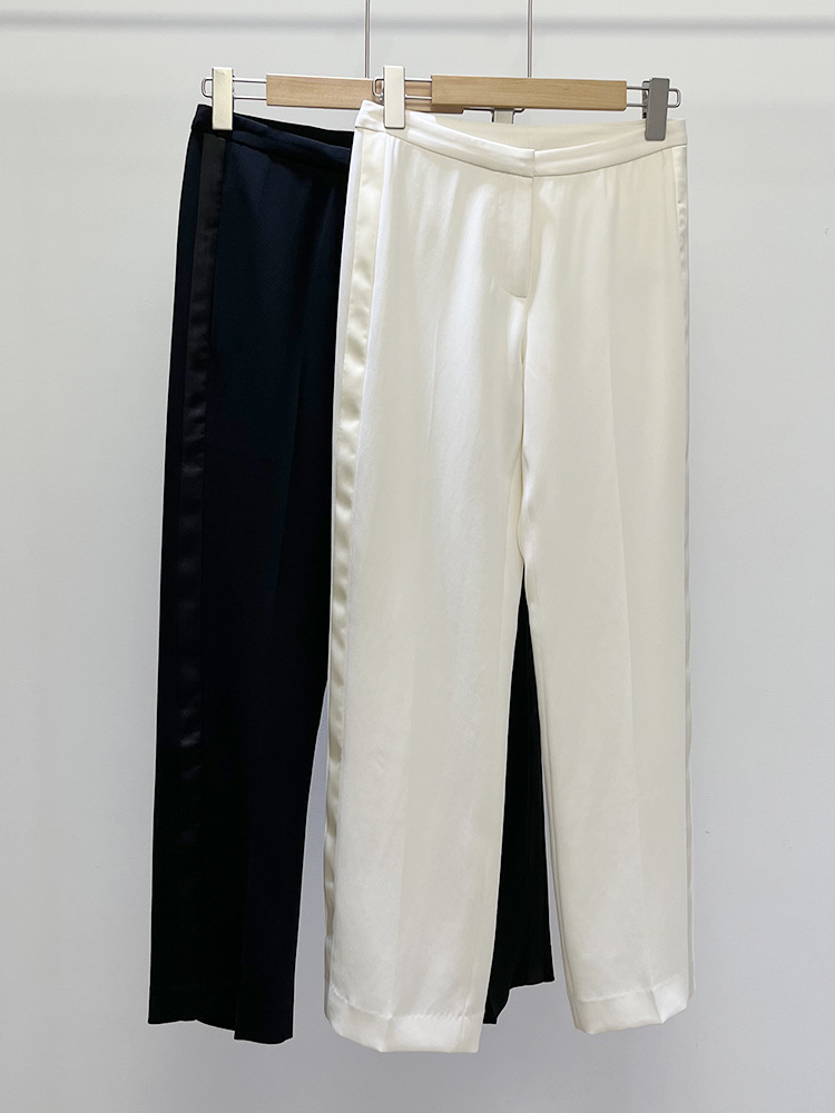 The New Tri아세테이트 대비 컬러 스트레이트 팬츠 새틴 스티치 심플 패션 슬림 루즈한 착한웨어 올매치 팬츠스토어 가기