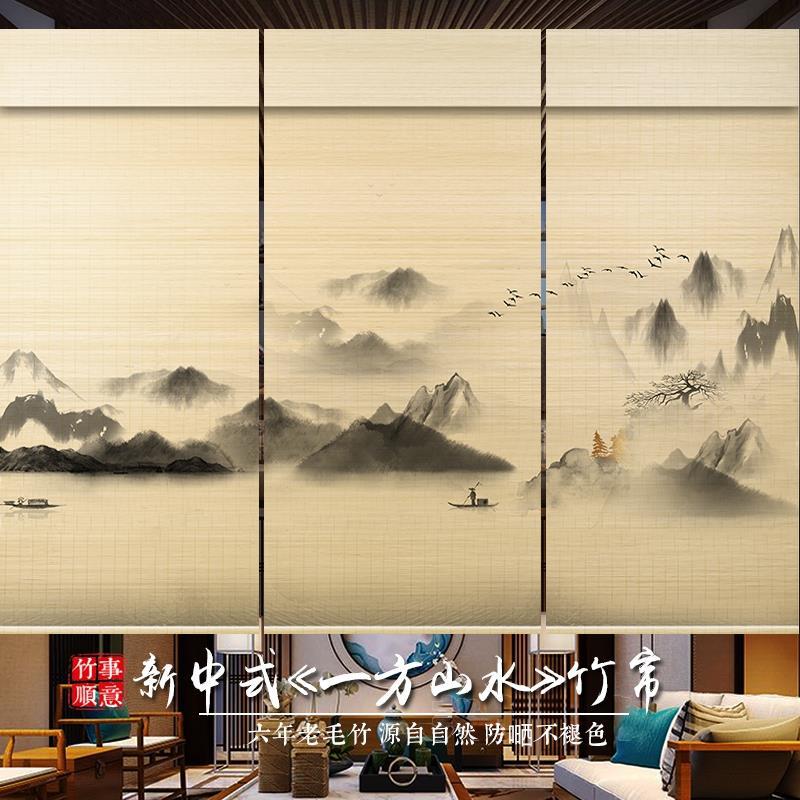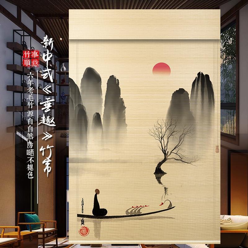 대나무 커튼 커튼 롤러 커튼 도어 커튼 반 음영 파티션 발코니 사무실 대나무 커튼 중국식 리프팅 차양 커튼스토어 가기
