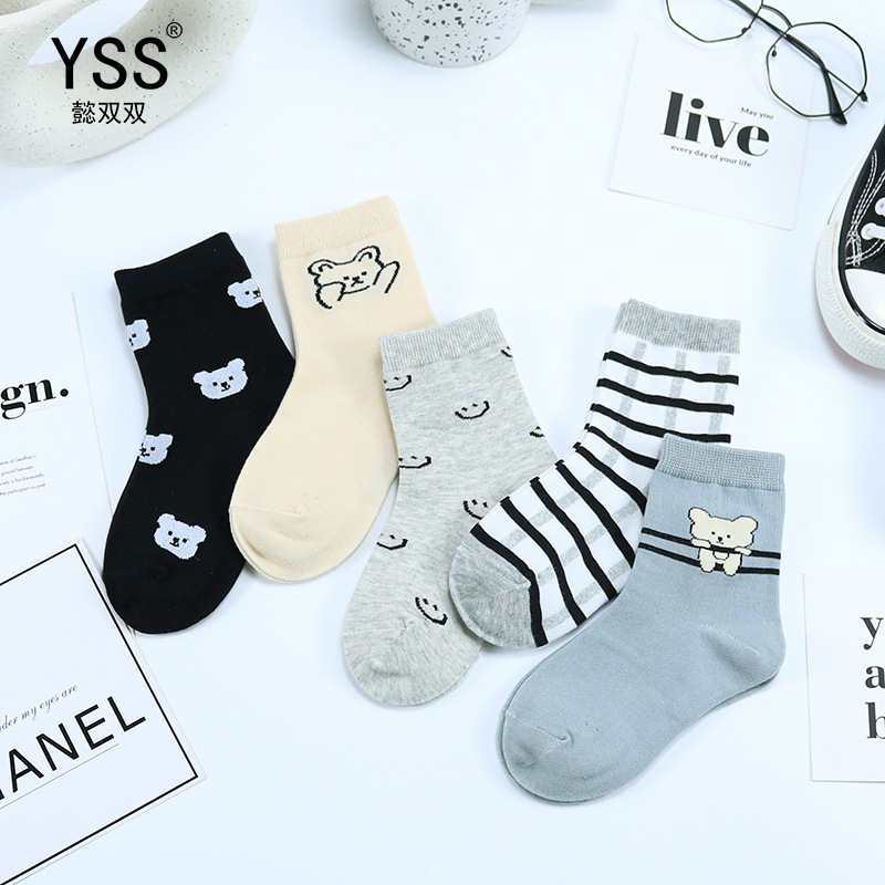 어린이 더블 양말 가을과 겨울 새로운 한국식 곰 중반 송아지 양말 빗질 코튼 소년의 웃는 얼굴 학생 양말 면화 양말스토어 가기