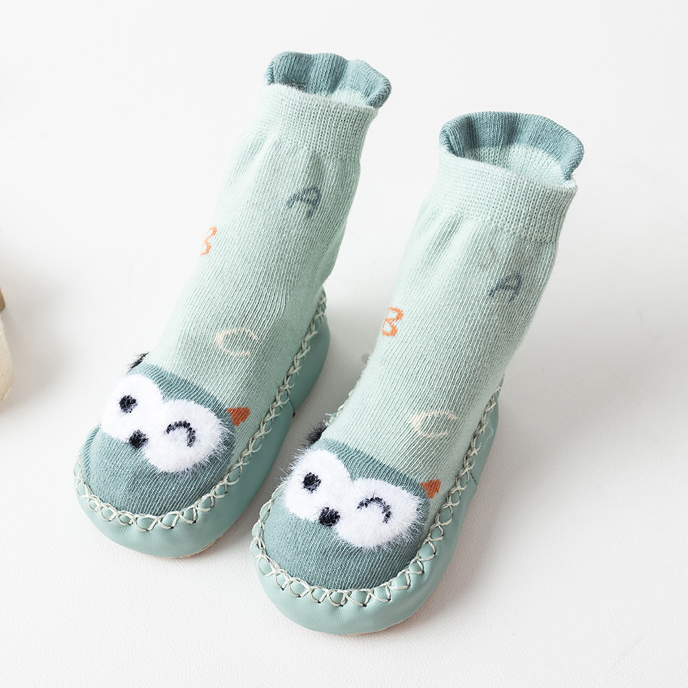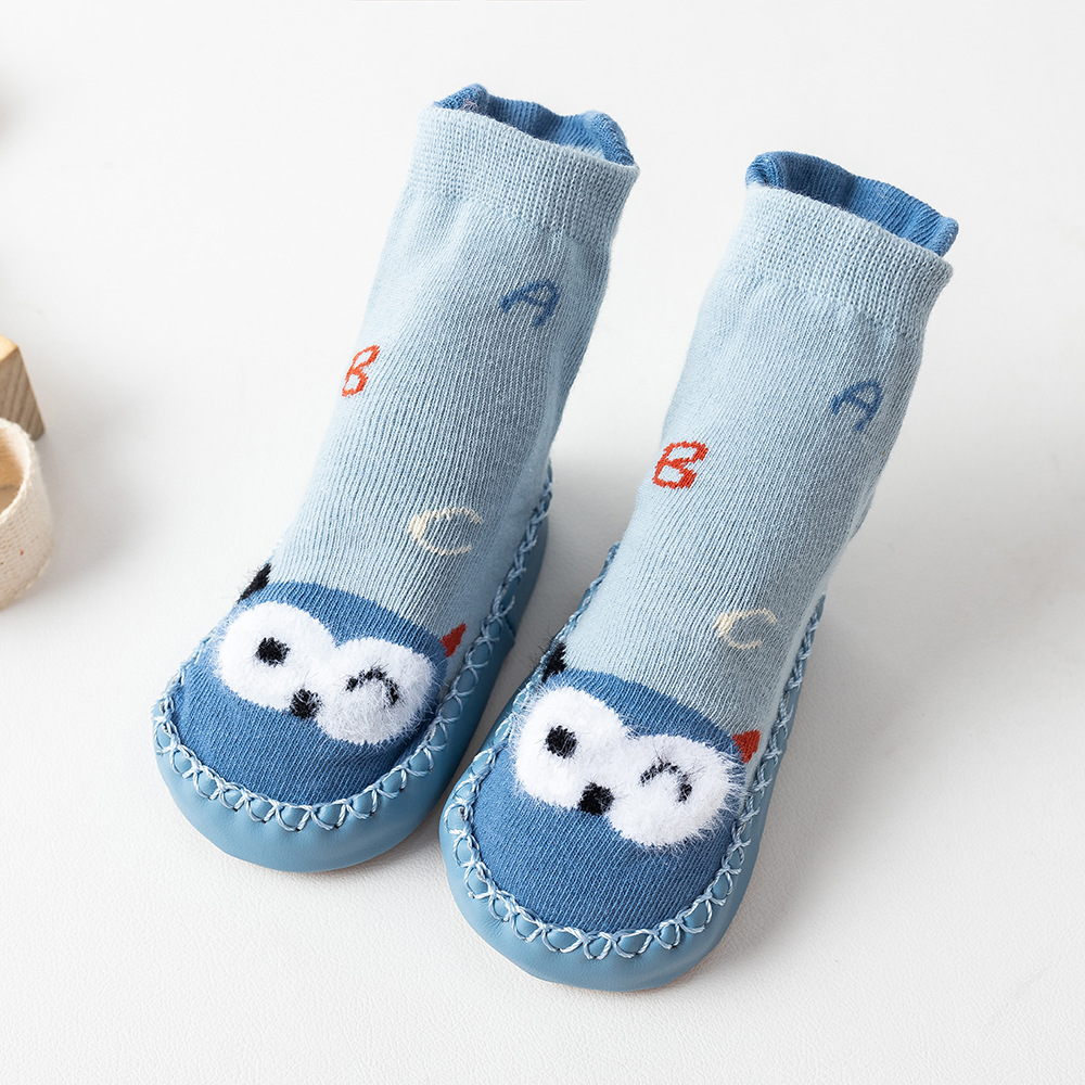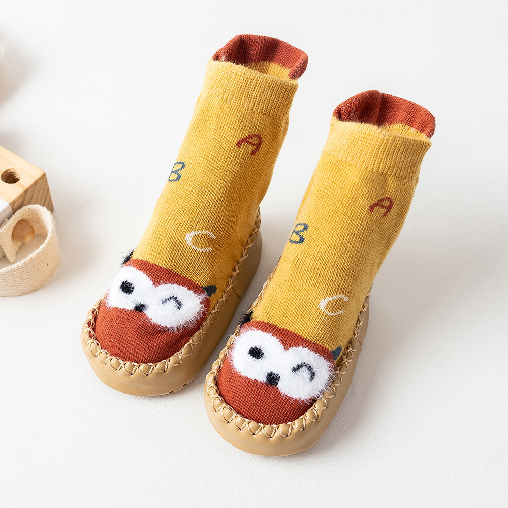 귀여운 만화 아기 유아 바닥 양말 재고 도매 가정 미끄럼 방지 편안한 신발 양말 어린이 면화 유아 신발스토어 가기