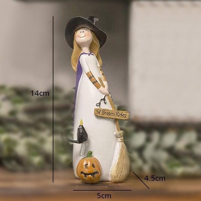 새로운 크로스 보더 마녀 장식 수지 동상 장식품 귀여운 가족 휴가 장식 할로윈 공예