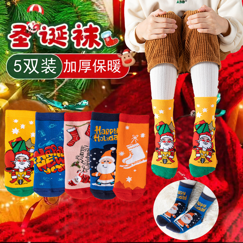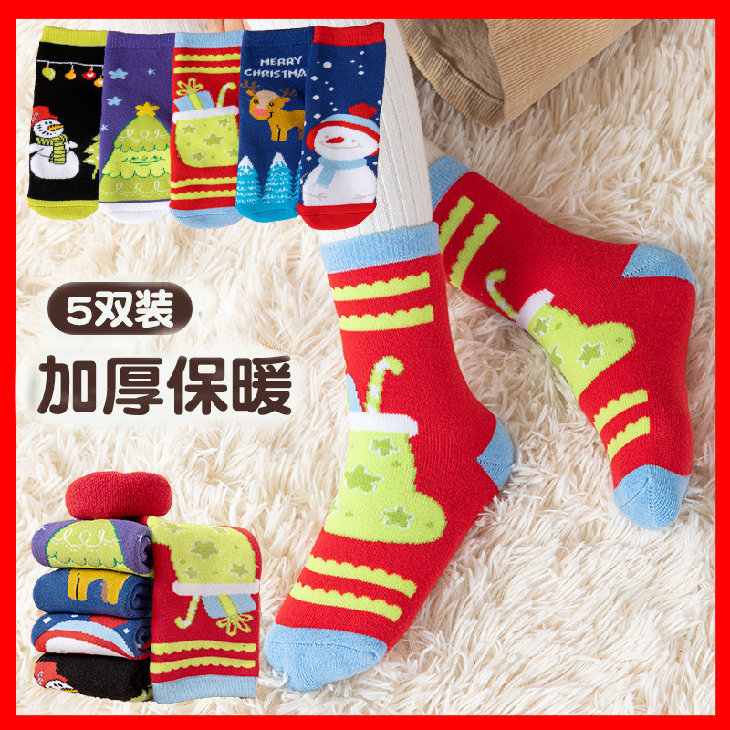 크리스마스용 두꺼운 테리 양말, 겨울용 남아 여아 빨간색 휴일 만화 따뜻한 타월 양말, 새해 양말스토어 가기