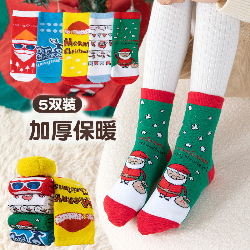 크리스마스용 두꺼운 테리 양말, 겨울용 남아 여아 빨간색 휴일 만화 따뜻한 타월 양말, 새해 양말