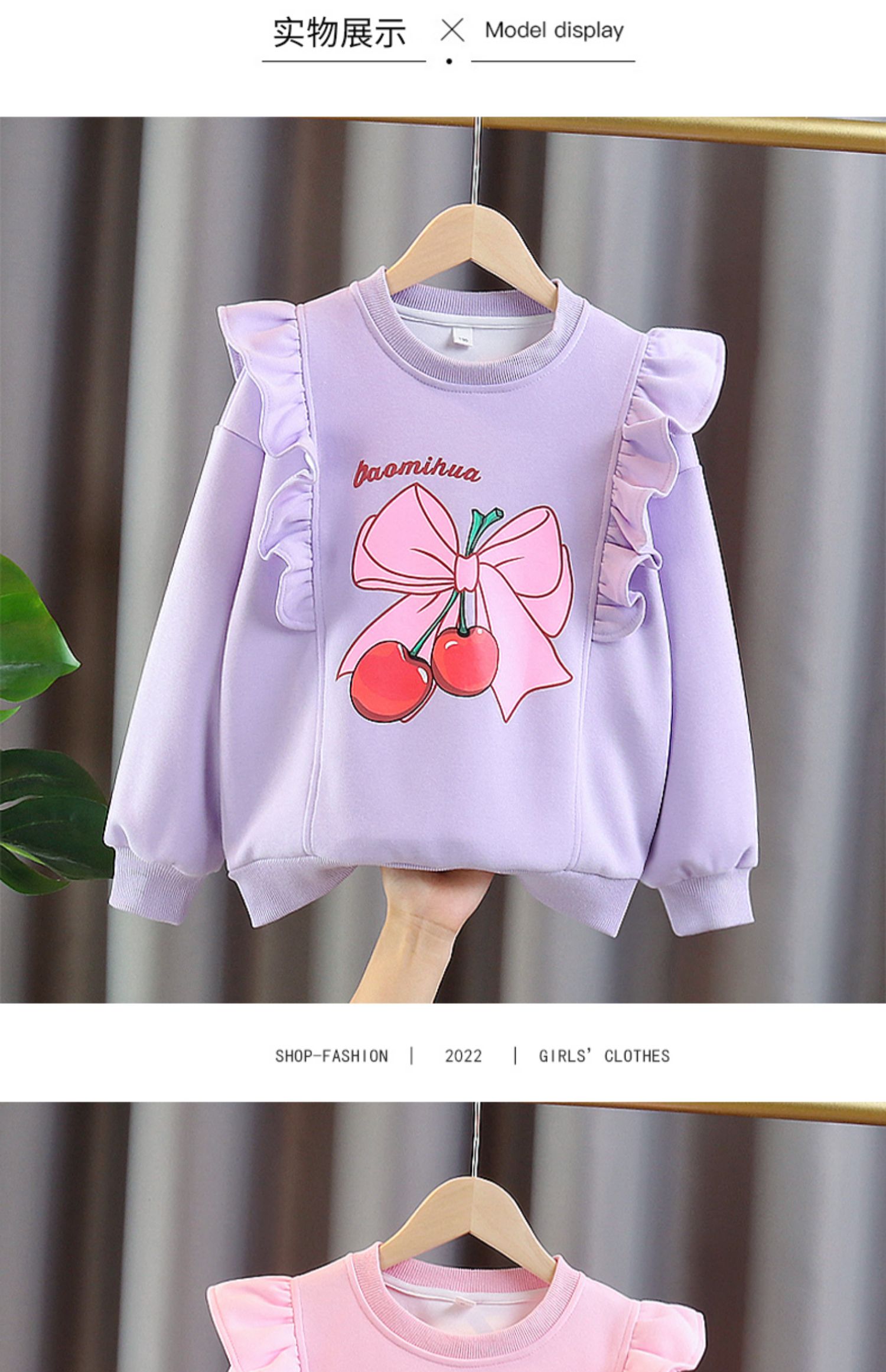 여아 레이스 스웨터 2022 새로운 어린이 서양 스타일 탑 대형 어린이 가을 느슨한 체리 풀오버 유행 옷스토어 가기