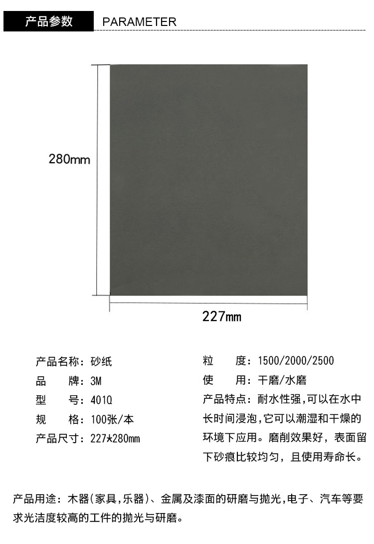 3M401Q 고효율 물 모래 종이 1500 메쉬 2000 메쉬 P2500 자동차 미용 물 모래 종이 특수 3m 물 모래스토어 가기
