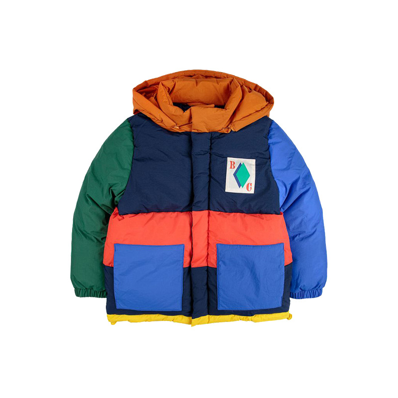 • 컬러 매칭 기하학 후드 코튼 패딩 재킷 (재고)