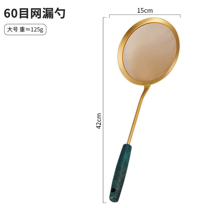 새로운 스테인레스 스틸 라인 누출 304 가벼운 고급 다크 그린 금도금 냄비 대형 소쿠리 주방 용품 스트레이너 오일 스푼