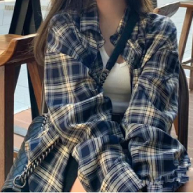 2022 긴 소매 셔츠 여성의 이른 가을 격자 무늬 디자인 감각 틈새 셔츠 느슨한 캐주얼 탑 재킷스토어 가기