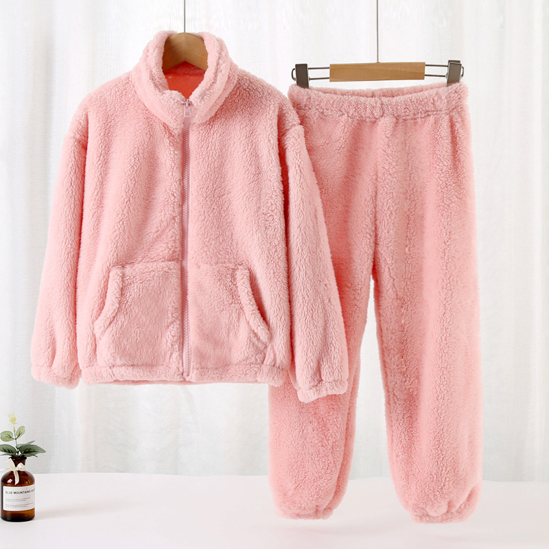 어린이 의류 어린이 가을과 겨울 면 벨벳 가정 옷 세트 기모 두꺼운 소년 소녀 두꺼운 잠옷 세트