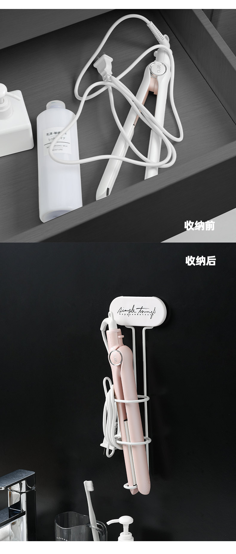 컬링로드 스토리지 랙 욕실 비 천공 벽걸이 컬링로드 스트레이트 헤어 빗 스토리지 랙 스트레이트 부목 스토리지 랙