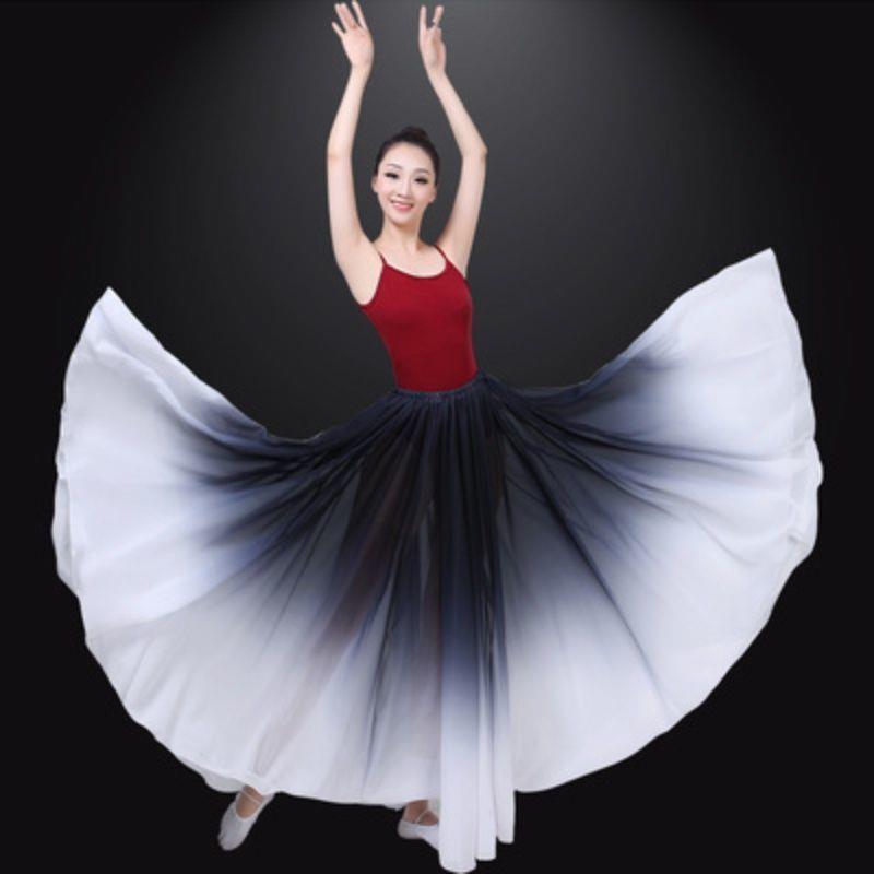 새로운 클래식 댄스 퍼포먼스 세트 여성의 대형 스윙 원피스 우아한 그라디언트 중국 스타일 댄스 발레 스퀘어 댄스 연습 세트