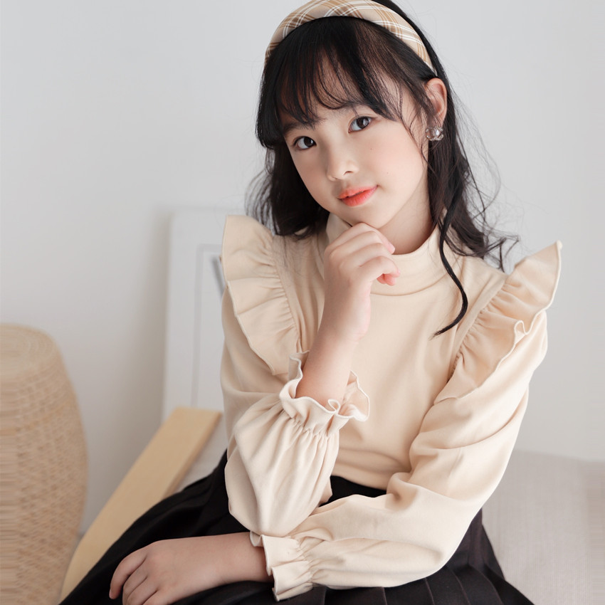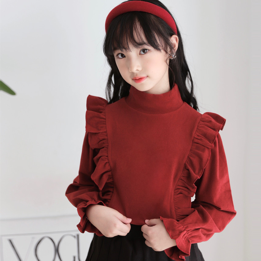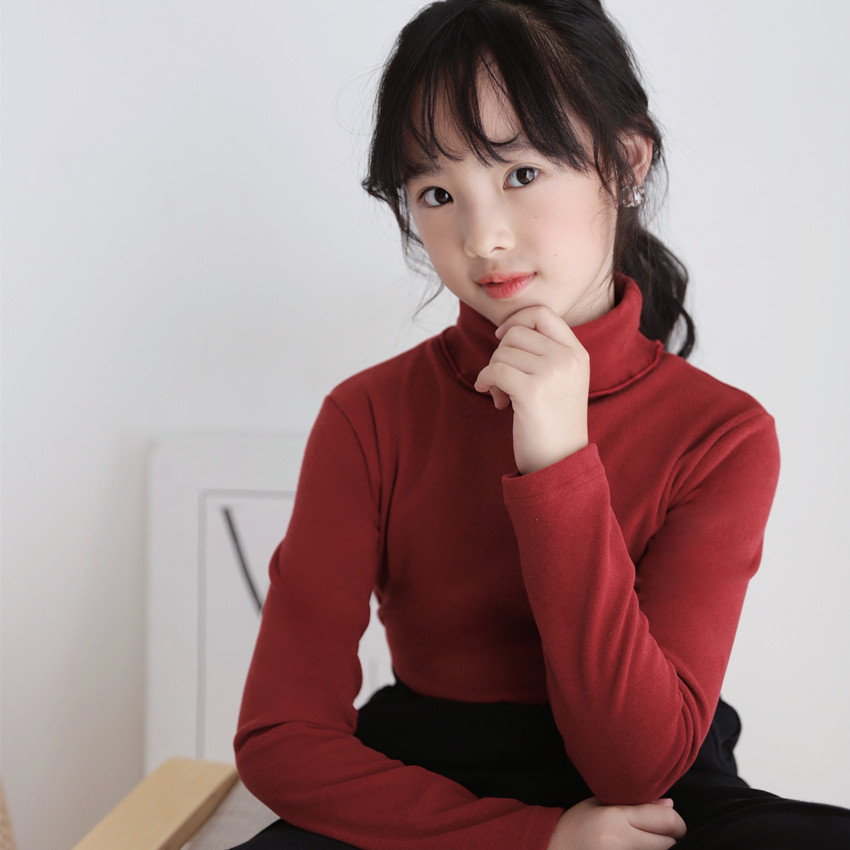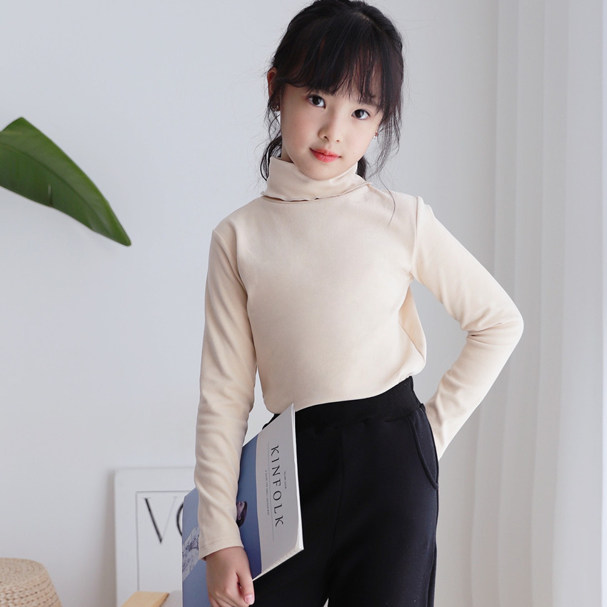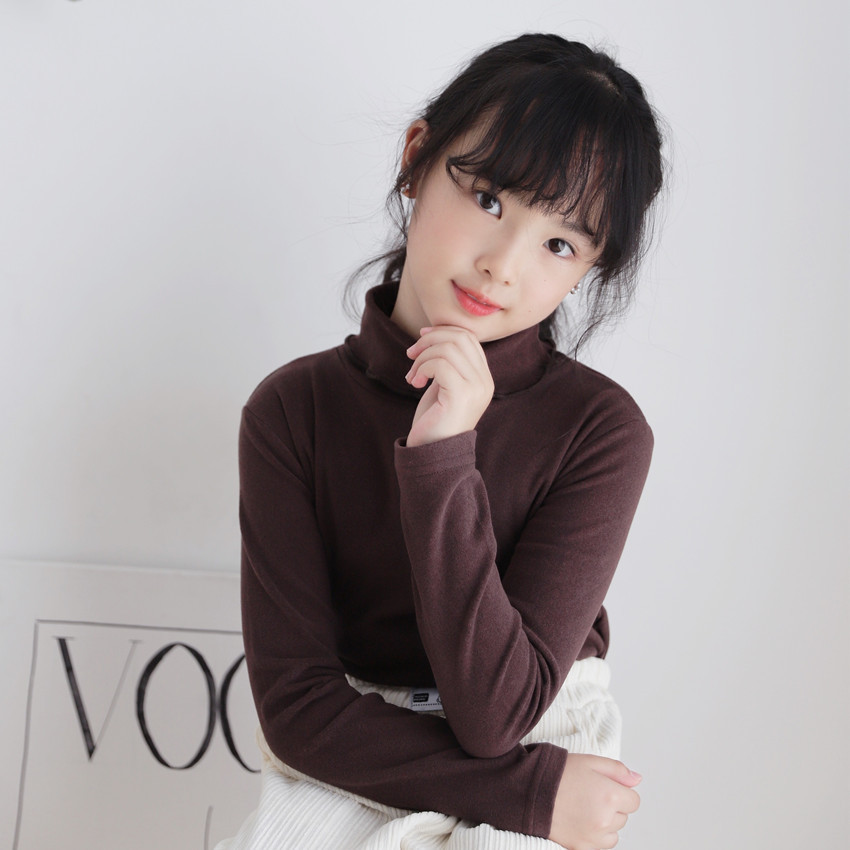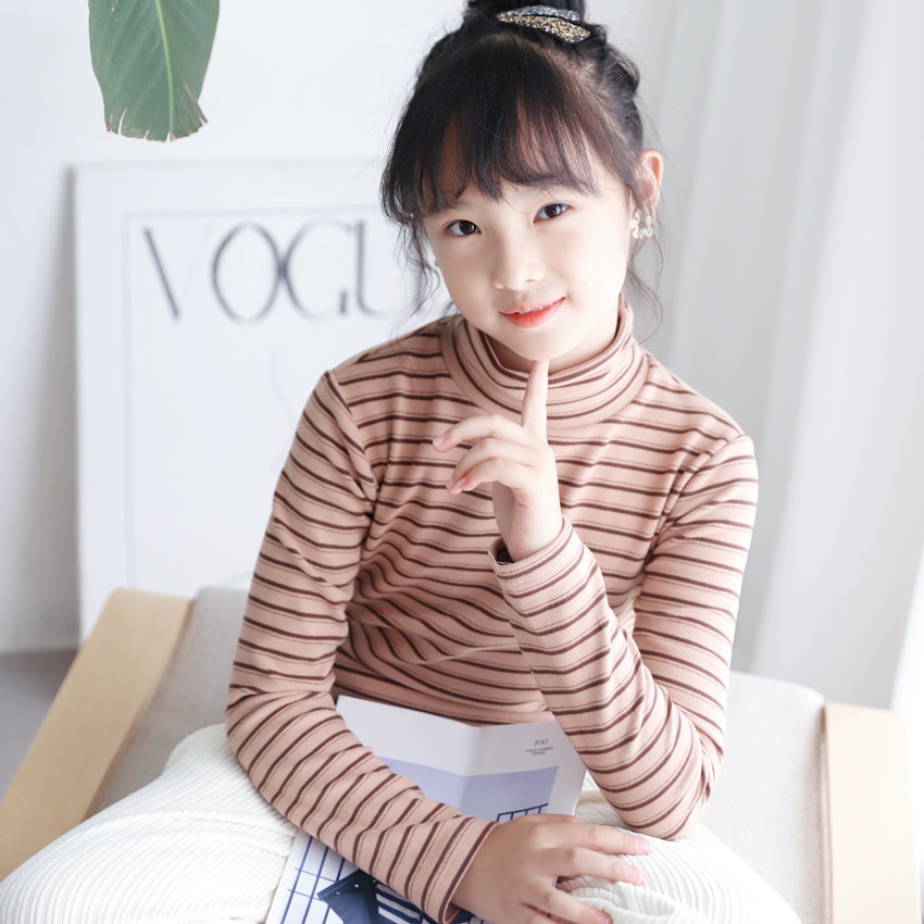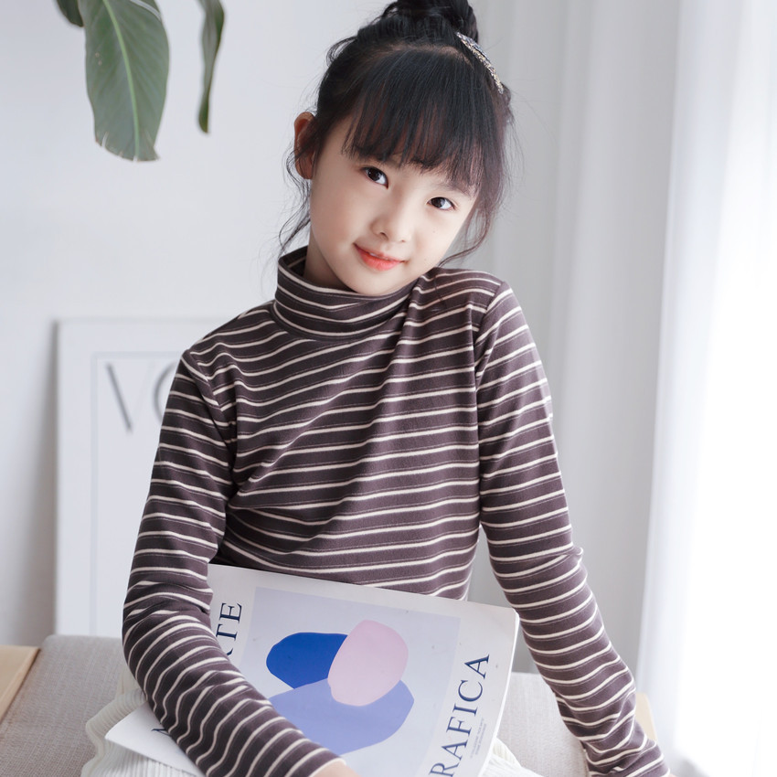 여아 한국식 베이스 셔츠 2023 새로운 하프 하이 넥 벨벳 스트라이프 중대형 아동용 긴팔 티셔츠