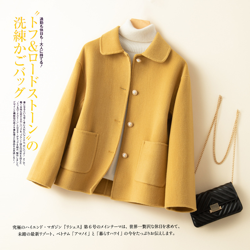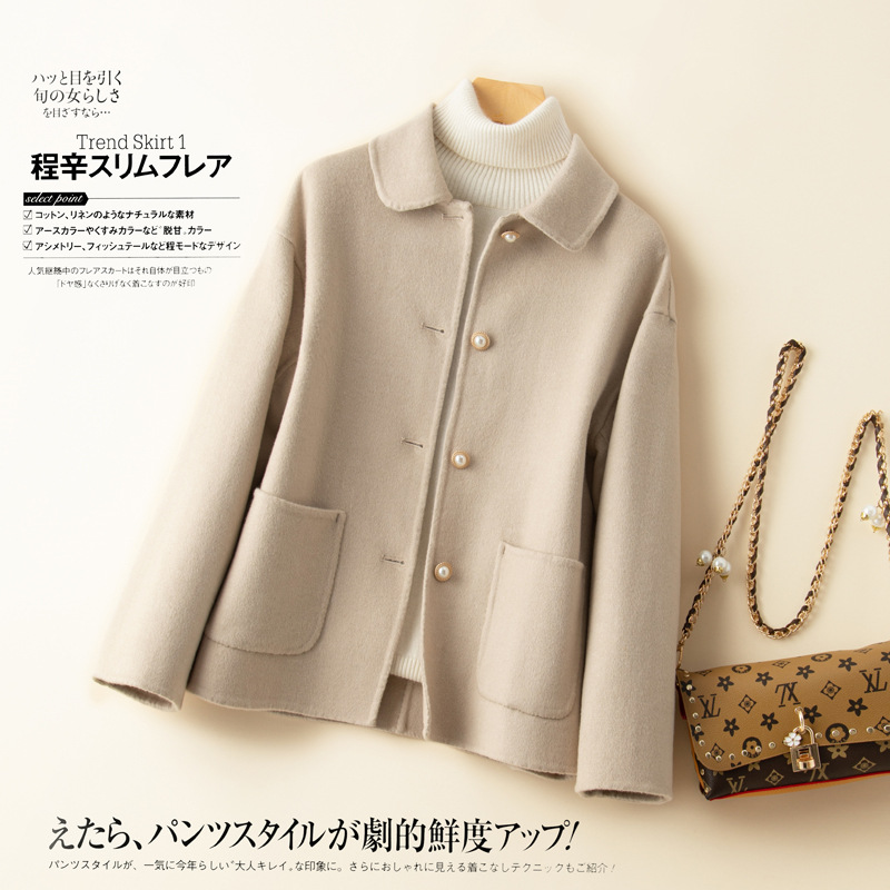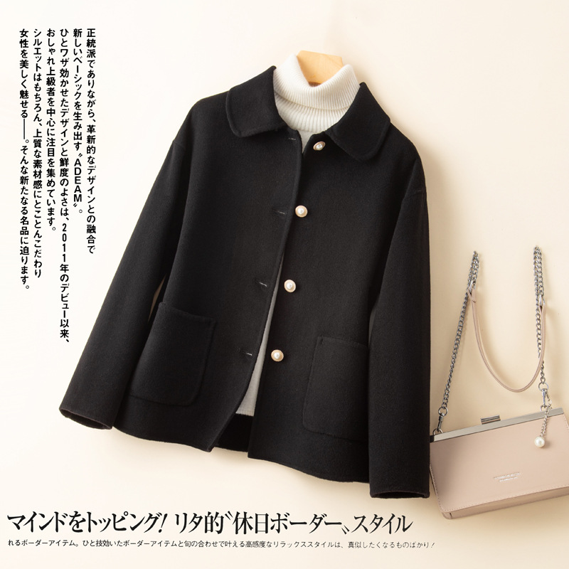 2025 양면 캐시미어 코트 여성용 숏 스타일 고급스러운 작은 사이즈 인형 칼라 작은 향수풍 모직 코트스토어 가기