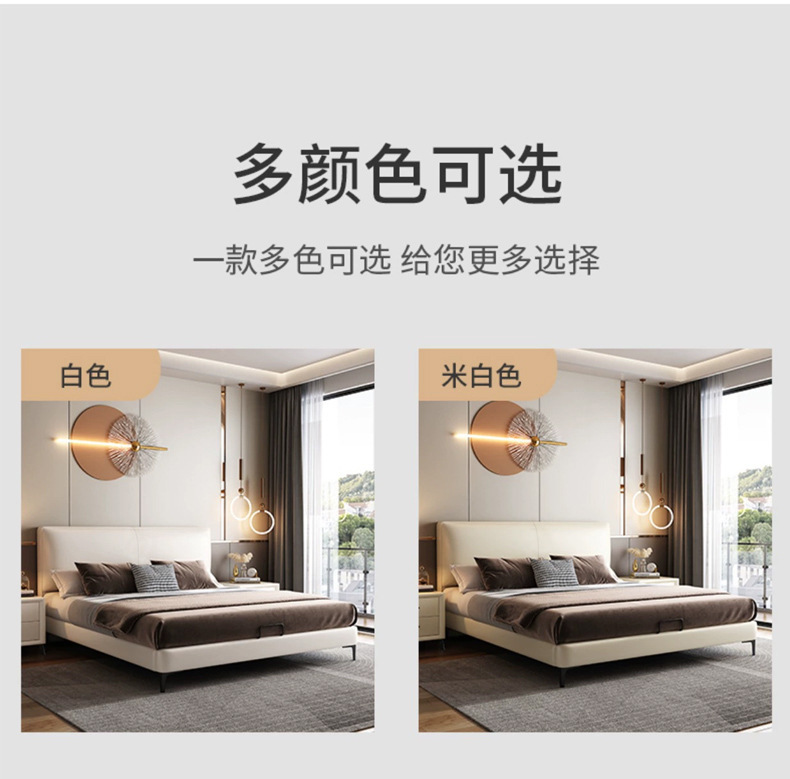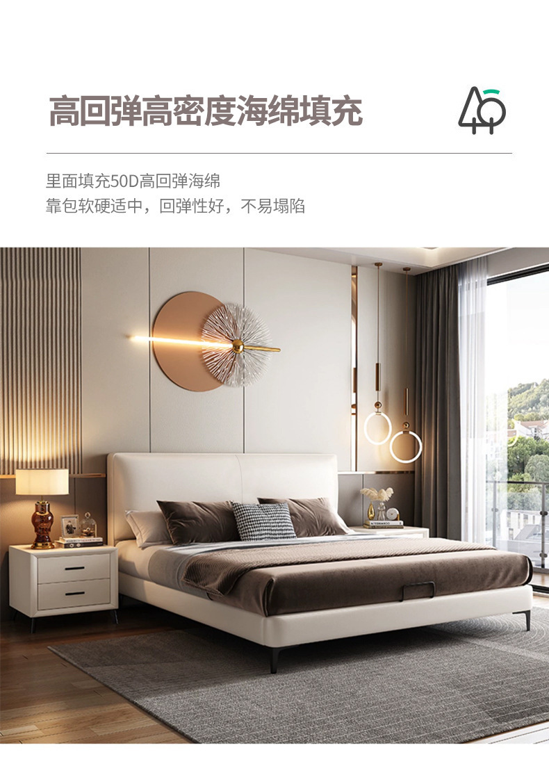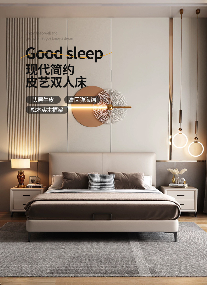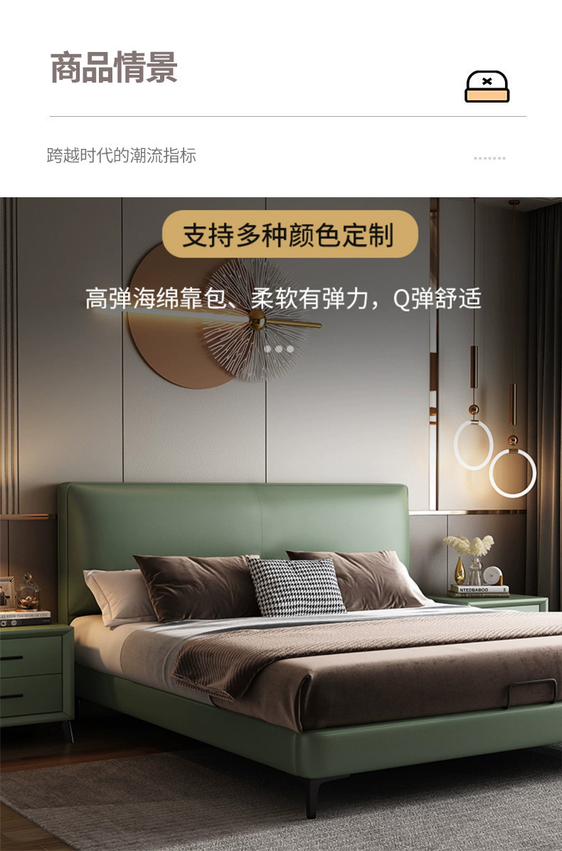 이탈리아 스타일 미니멀리스트 가죽 침대 현대 간단한 빛 고급 가죽 침대 더블 침대 작은 아파트 단단한 나무 부드러운 가방 마스터 침실 가죽 아트 침대스토어 가기