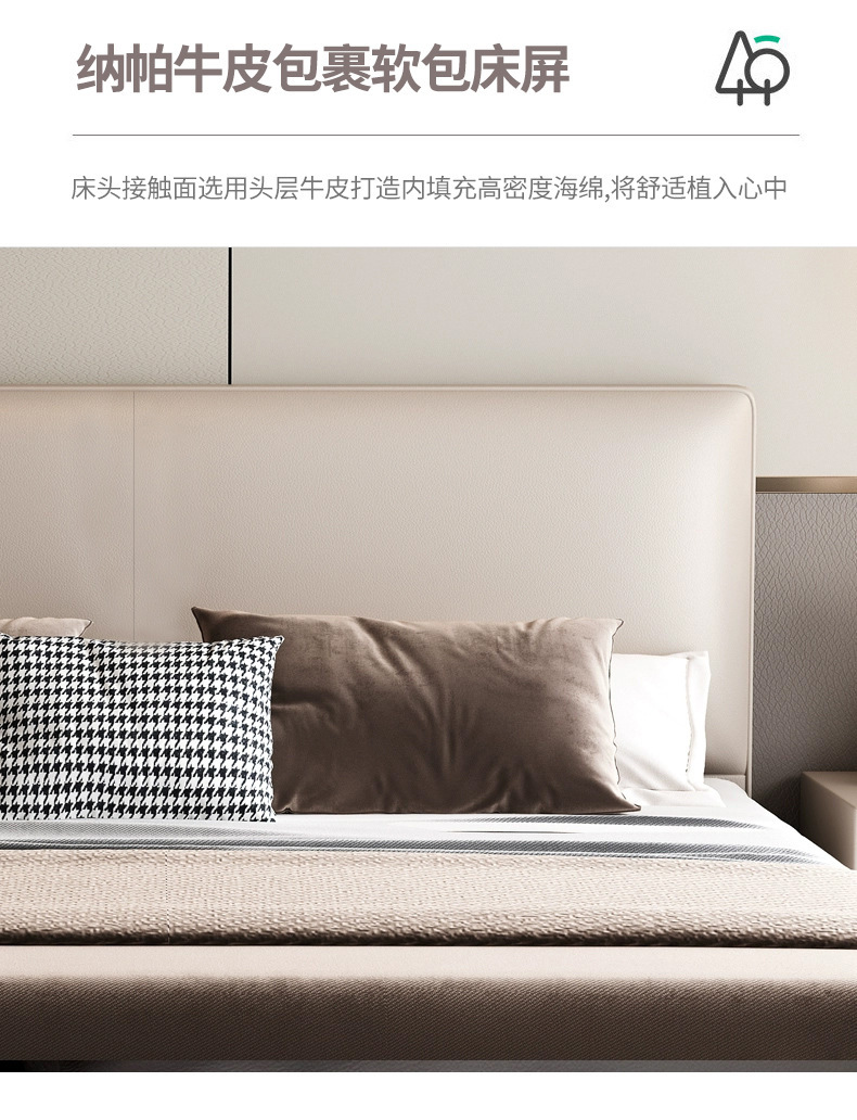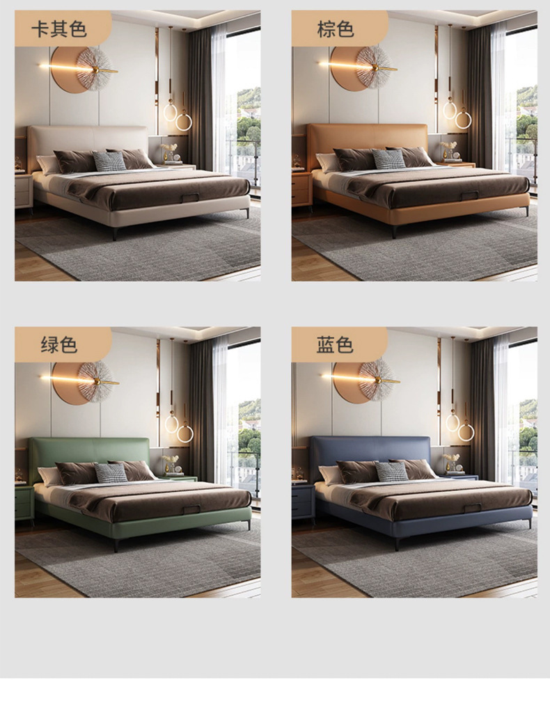 이탈리아 스타일 미니멀리스트 가죽 침대 현대 간단한 빛 고급 가죽 침대 더블 침대 작은 아파트 단단한 나무 부드러운 가방 마스터 침실 가죽 아트 침대
