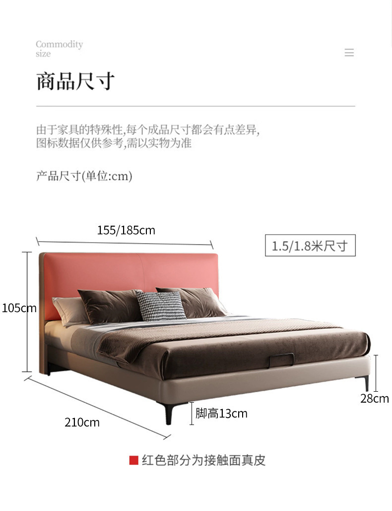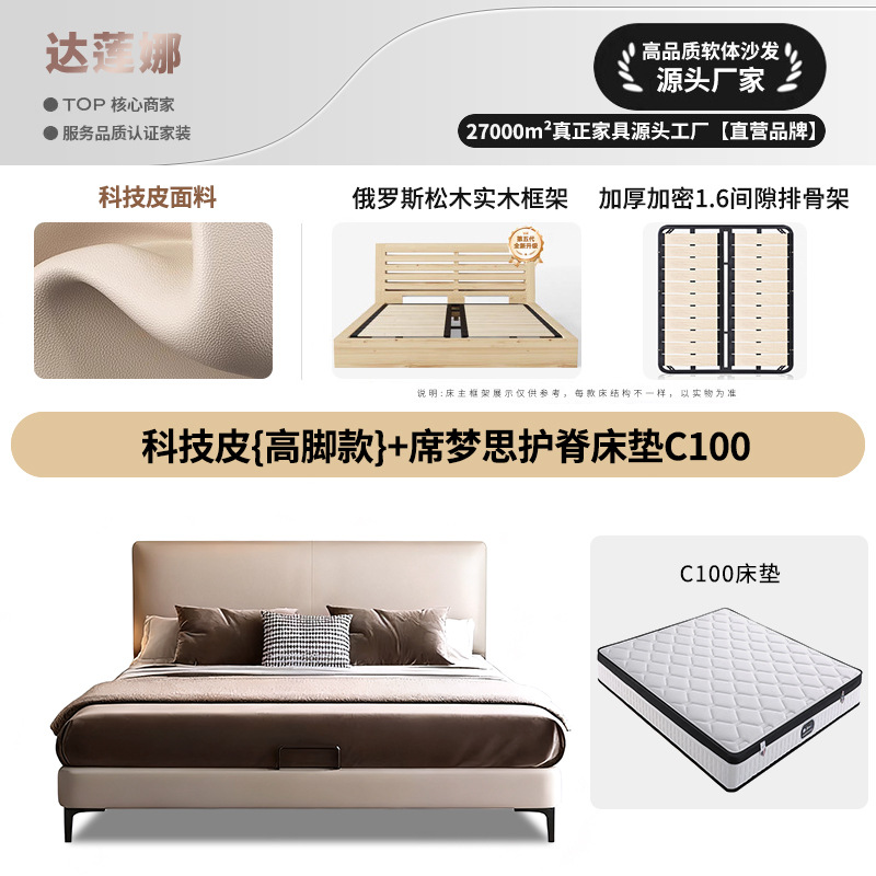 • 첫 번째 레이어 소 가죽 침대 {높은 발 두껍게 암호화 1.6 갭 행 스켈레톤} 시몬스 리지 매트리스 C100 침대 옆 테이블 1
