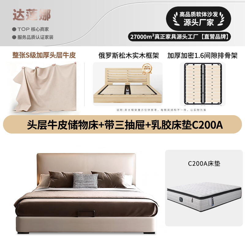 • 3 개의 서랍이있는 소 가죽 수납 침대의 첫 번째 레이어 {바닥 두꺼운 암호화 1.6 갭 행 골격} 라텍스 매트리스 C200A