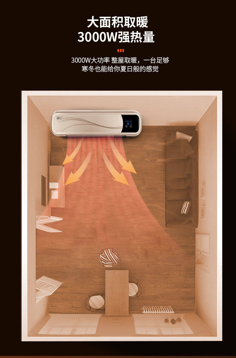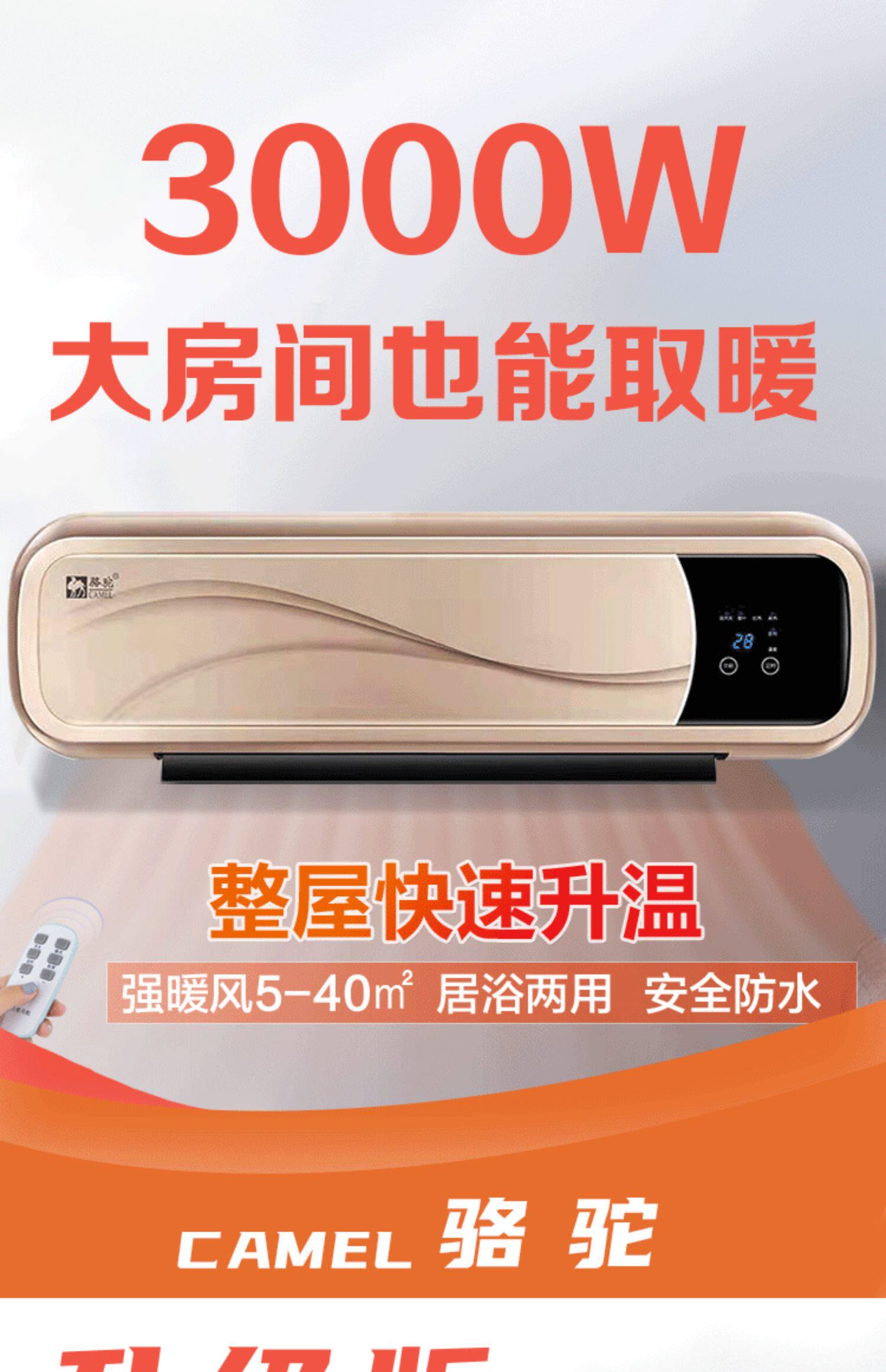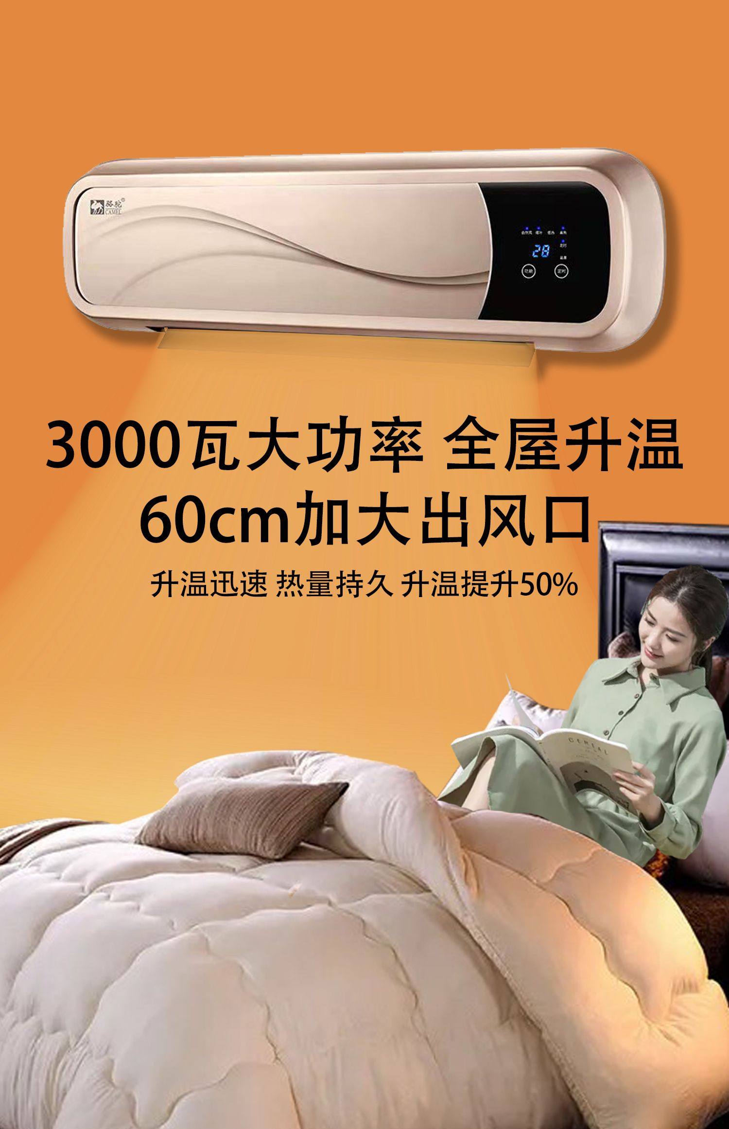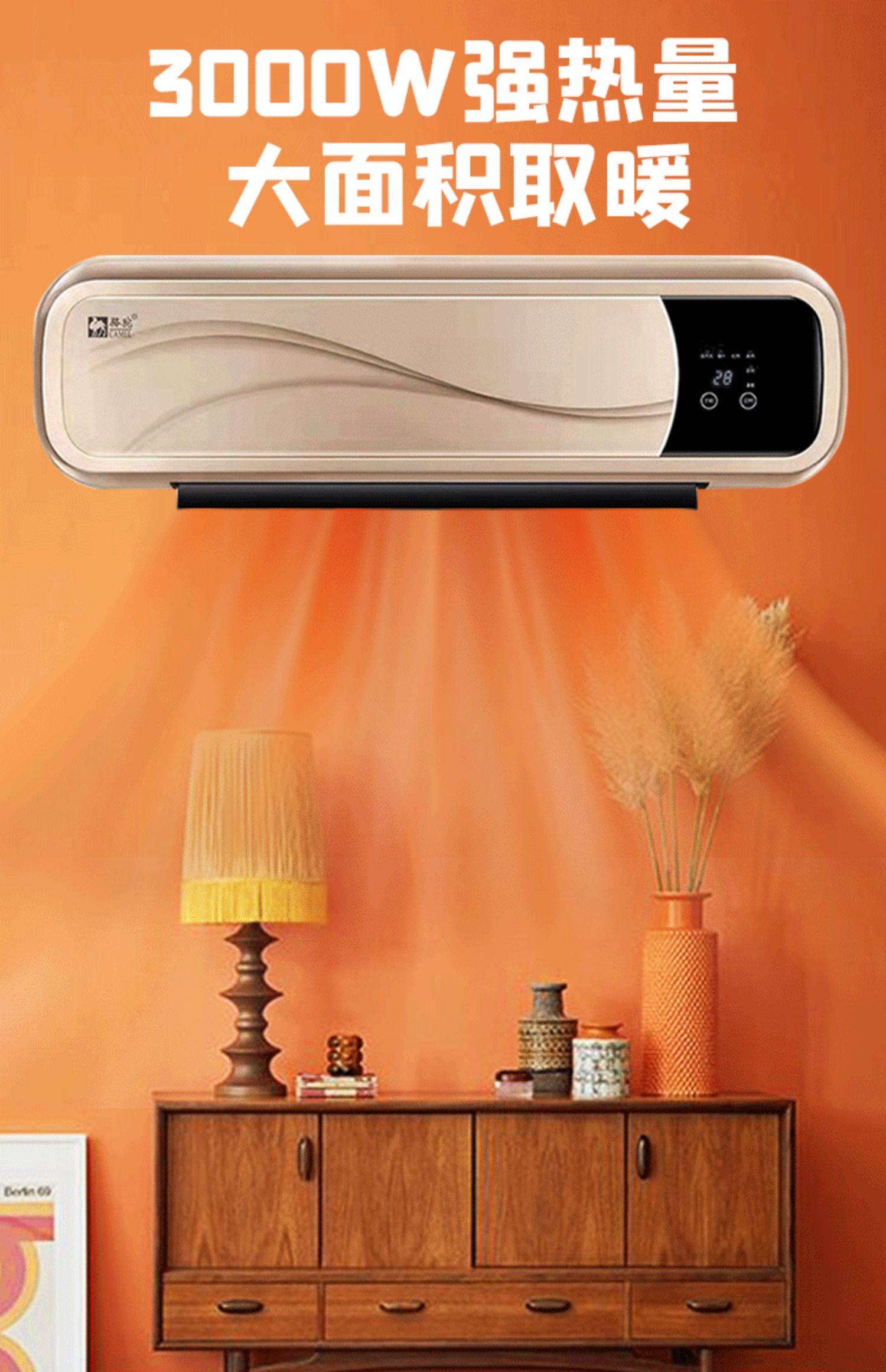 카멜 벽걸이 히터 욕실 히터 가정용 전기 난방 에어컨 히터 넓은 지역 에너지 절약 인공물스토어 가기