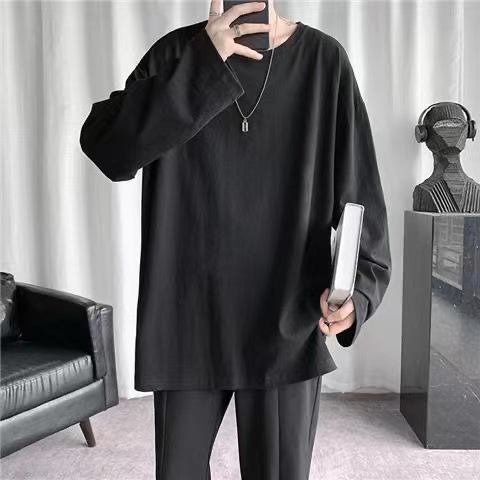 공장 도매 가을 한국 단색 크루 넥 긴 소매 티셔츠 캐주얼 남성 트렌드 느슨한 바닥 셔츠 긴스토어 가기